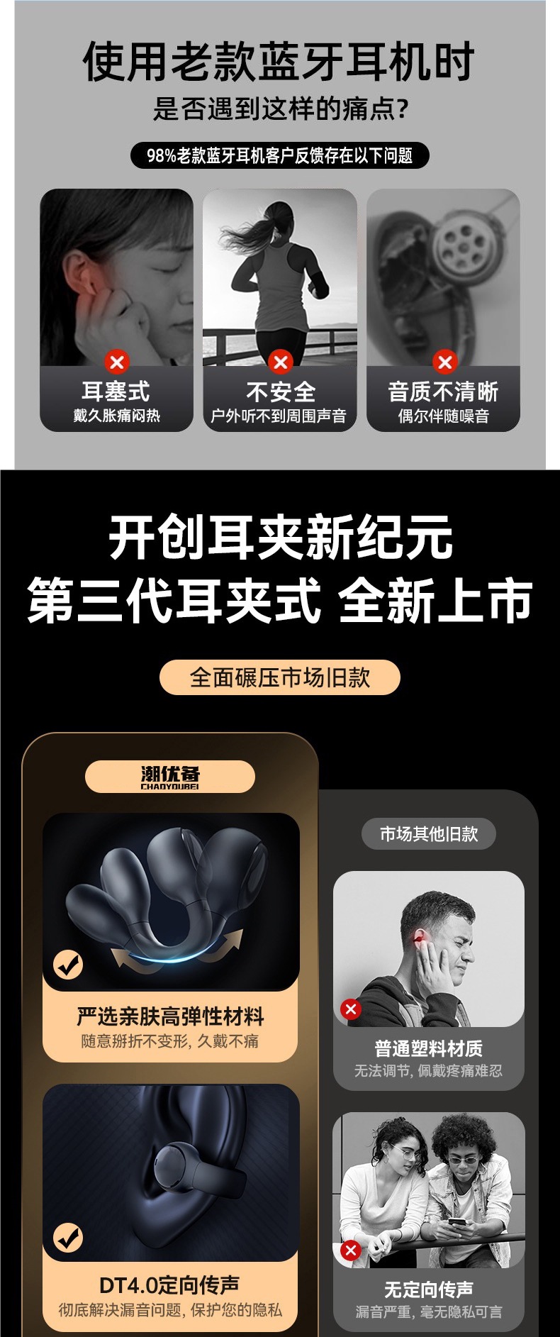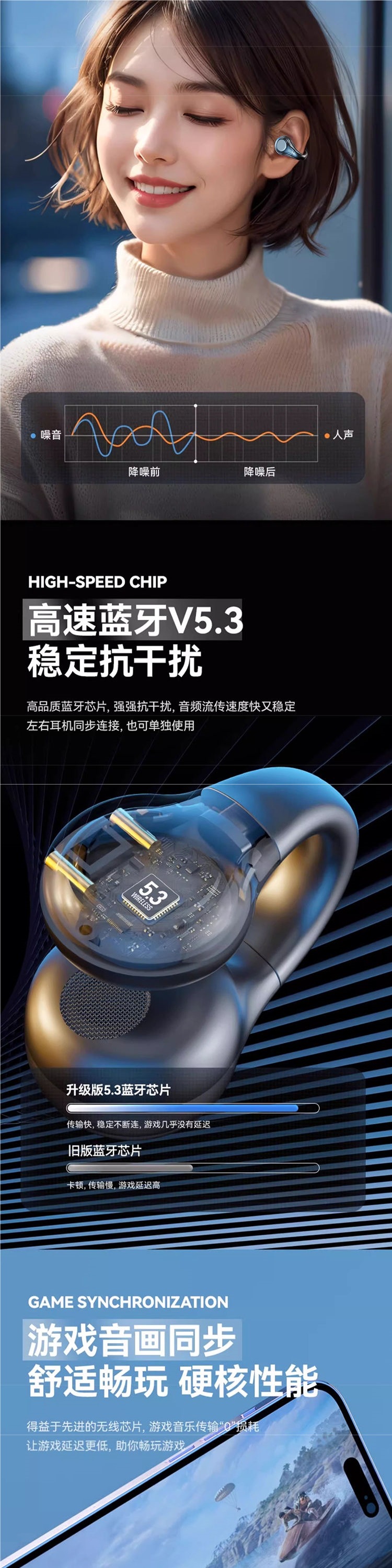 听歌不入耳蓝牙耳机降噪运动式续航新款骨传导高音质耳夹超长2025