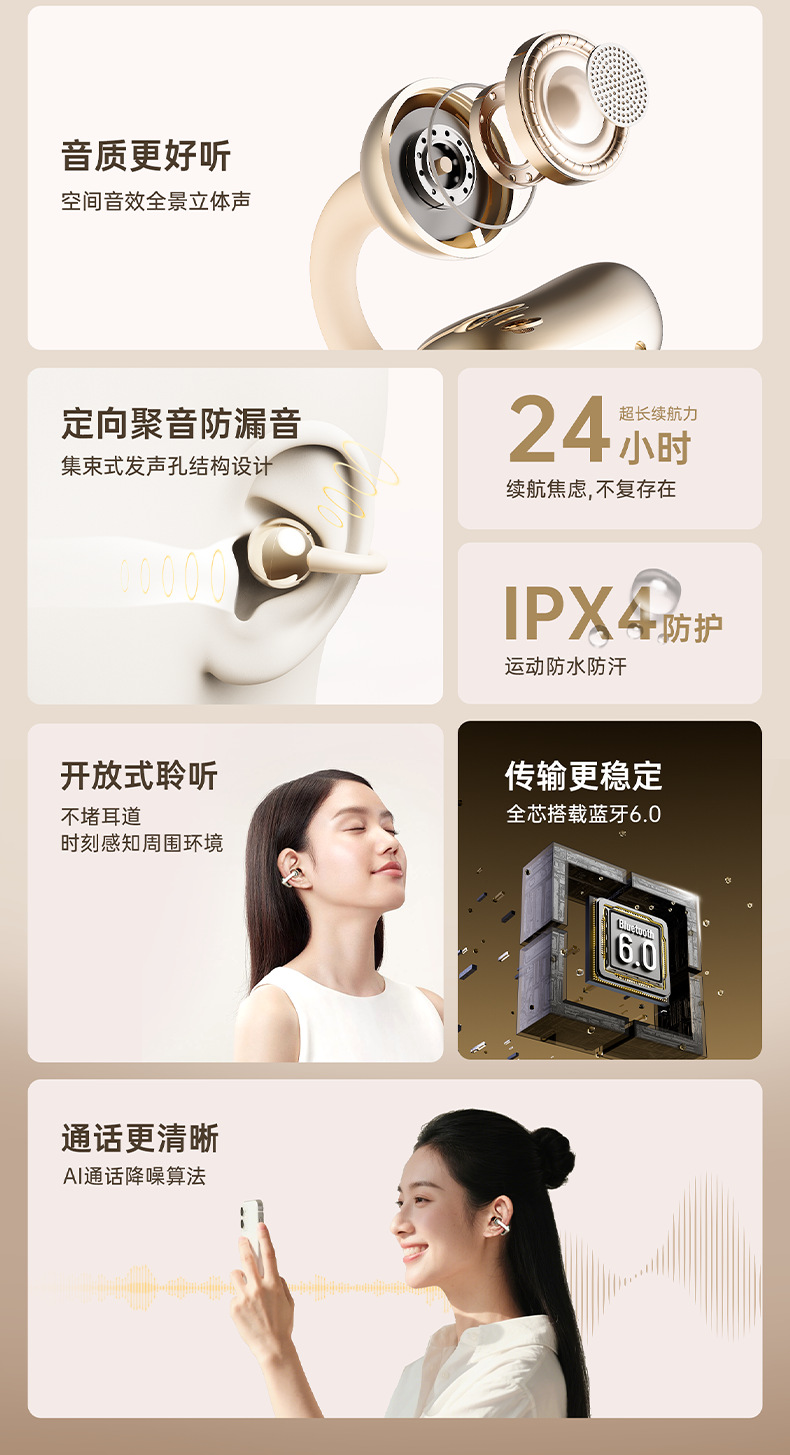 109蓝牙耳机无线不入耳骨传导开放式挂耳式运动跑步久戴不痛