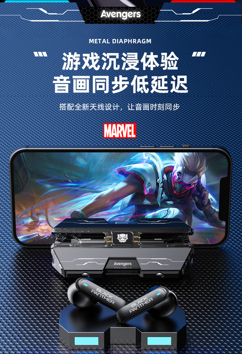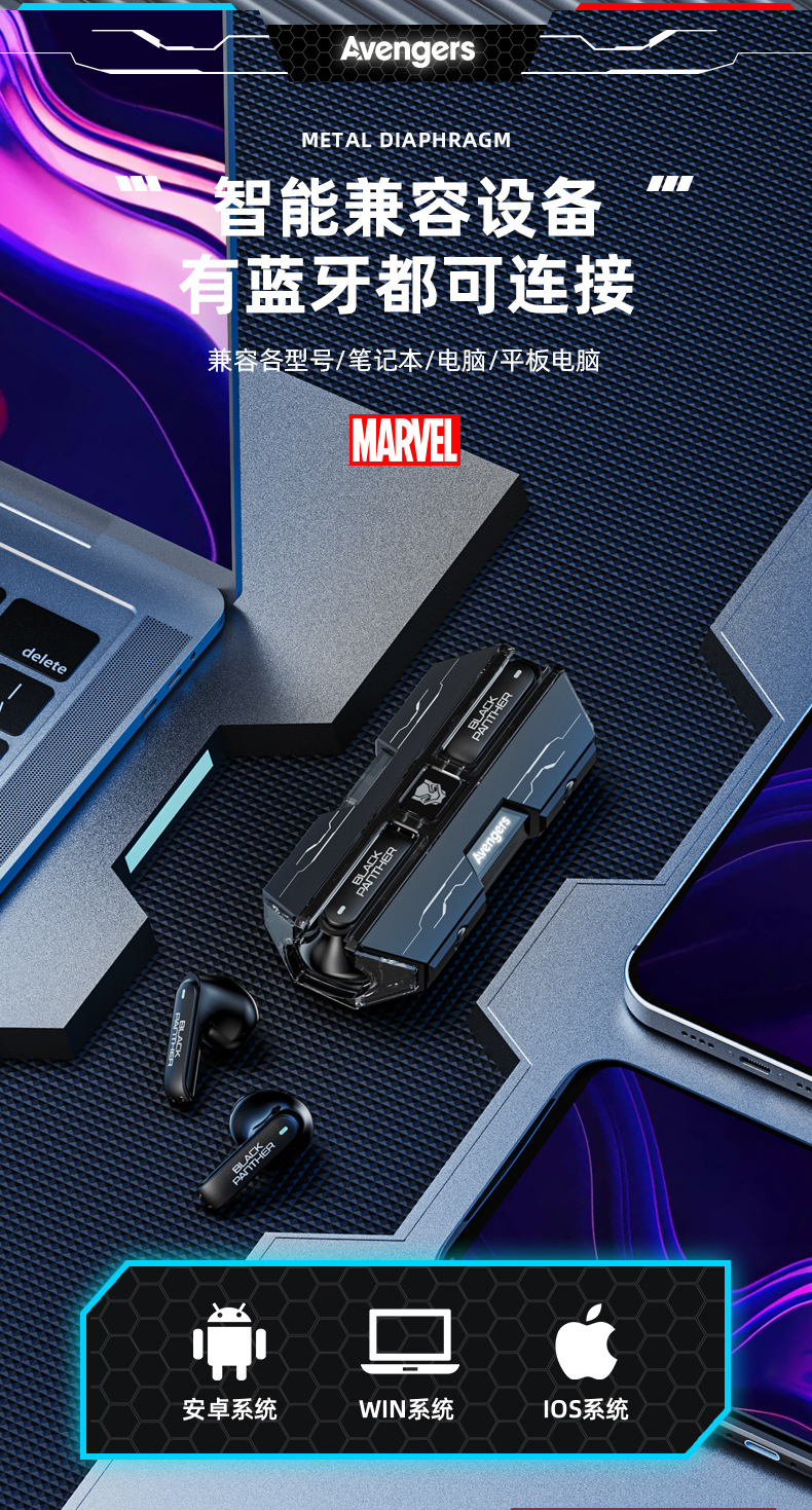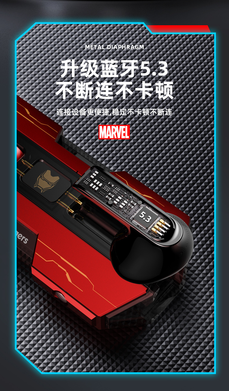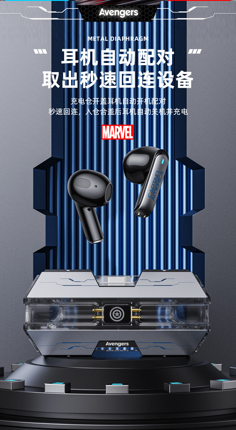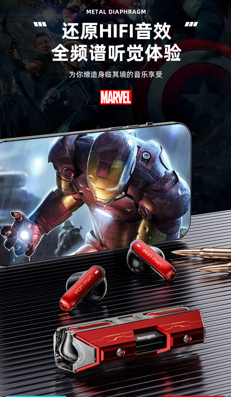 漫威蓝牙耳机无线入耳式大电量超长续航电竞游戏降噪