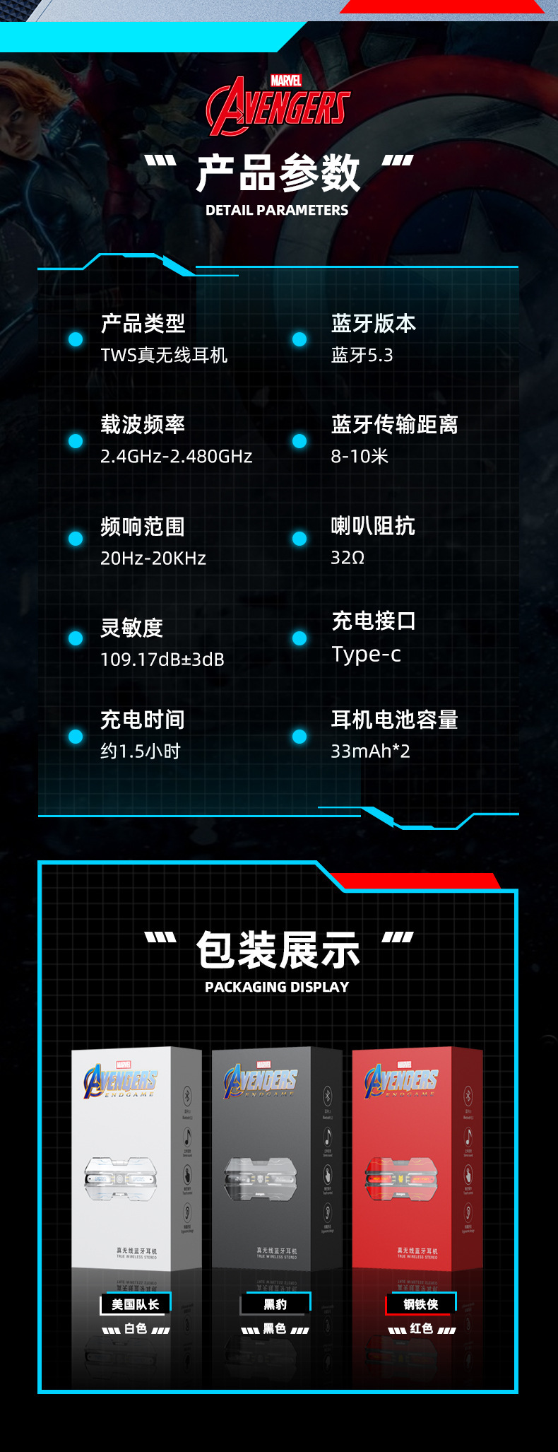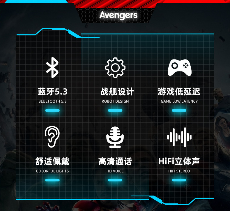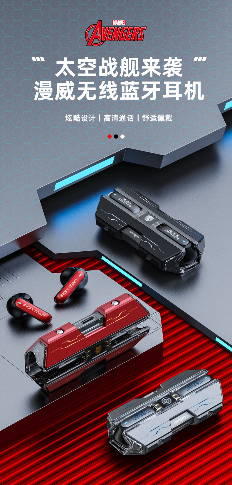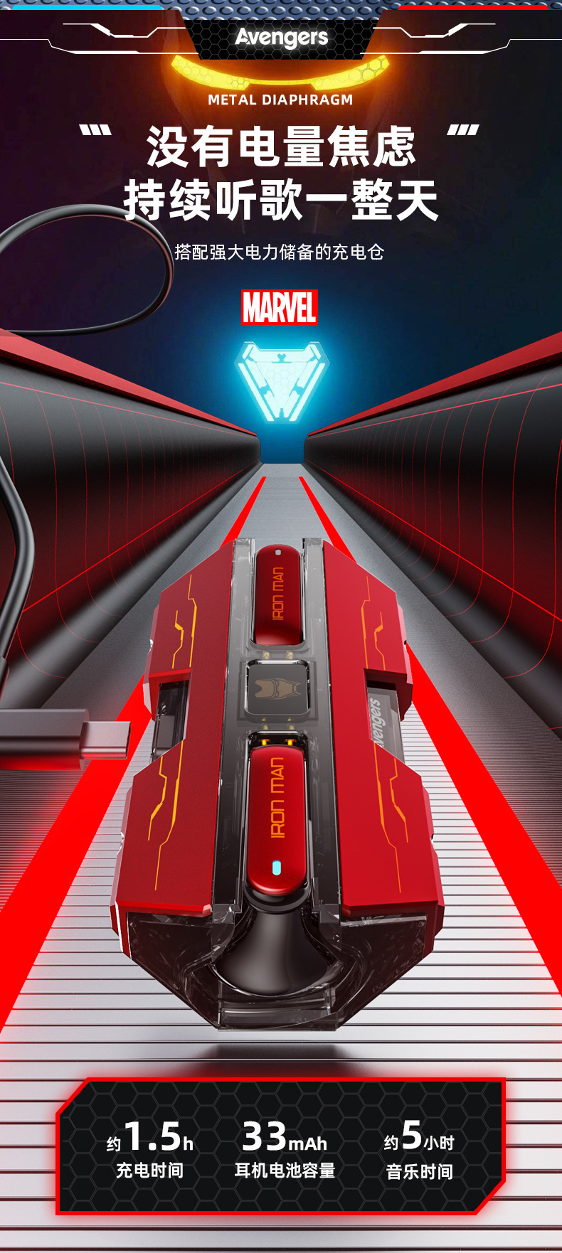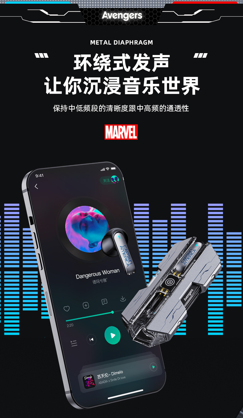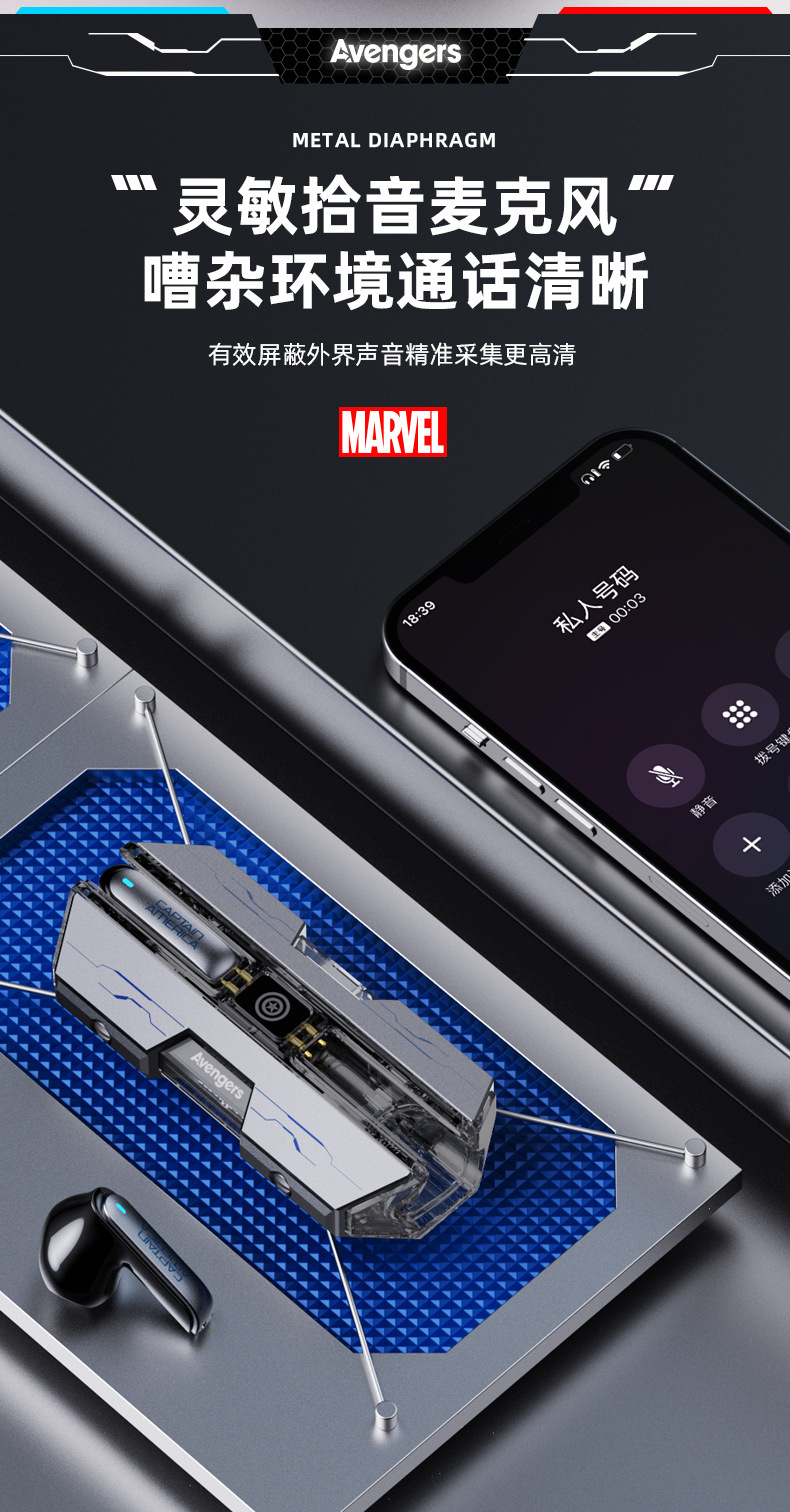 漫威蓝牙耳机无线入耳式大电量超长续航电竞游戏降噪