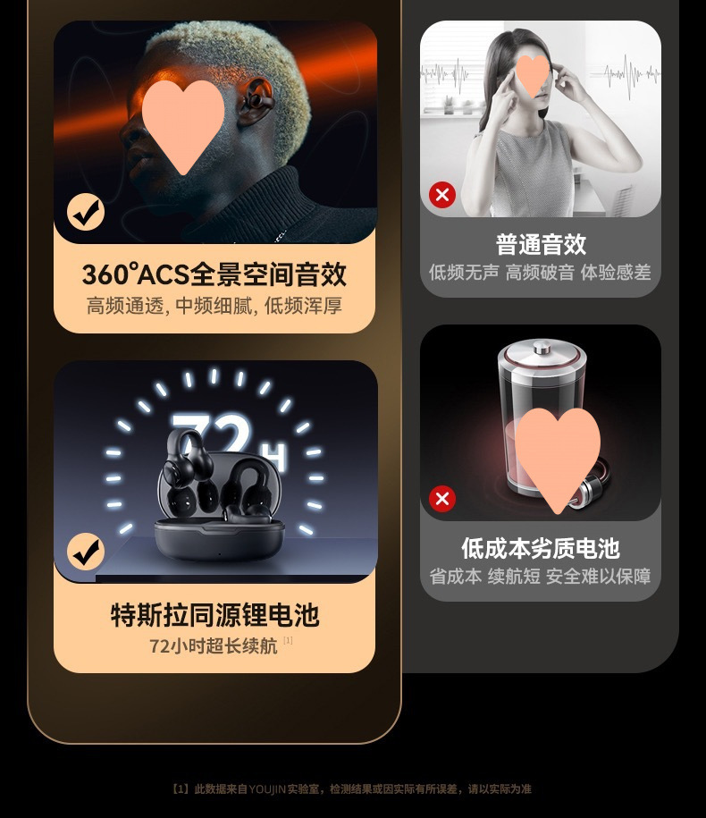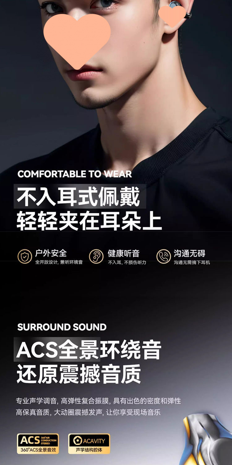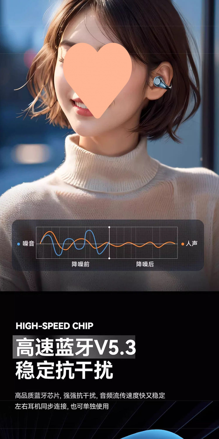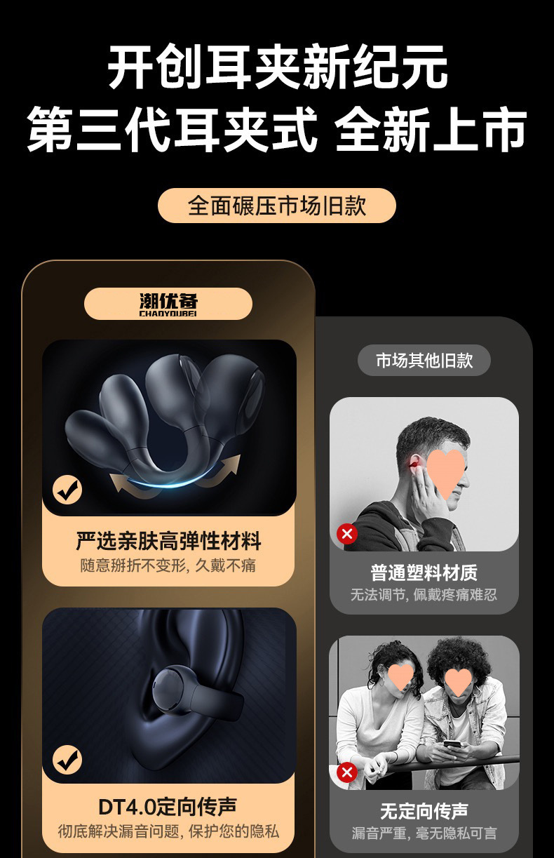 2025新款骨传导不入耳蓝牙耳机耳夹式超长续航降噪运动听歌高音质