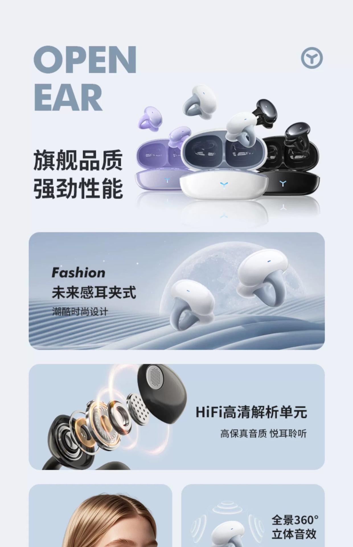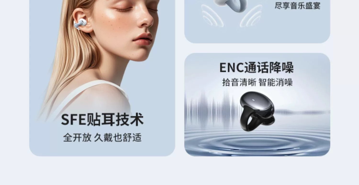 纽曼夹耳开放式蓝牙耳机5.4ENC夹耳式耳机降噪运动风游戏蓝牙耳机