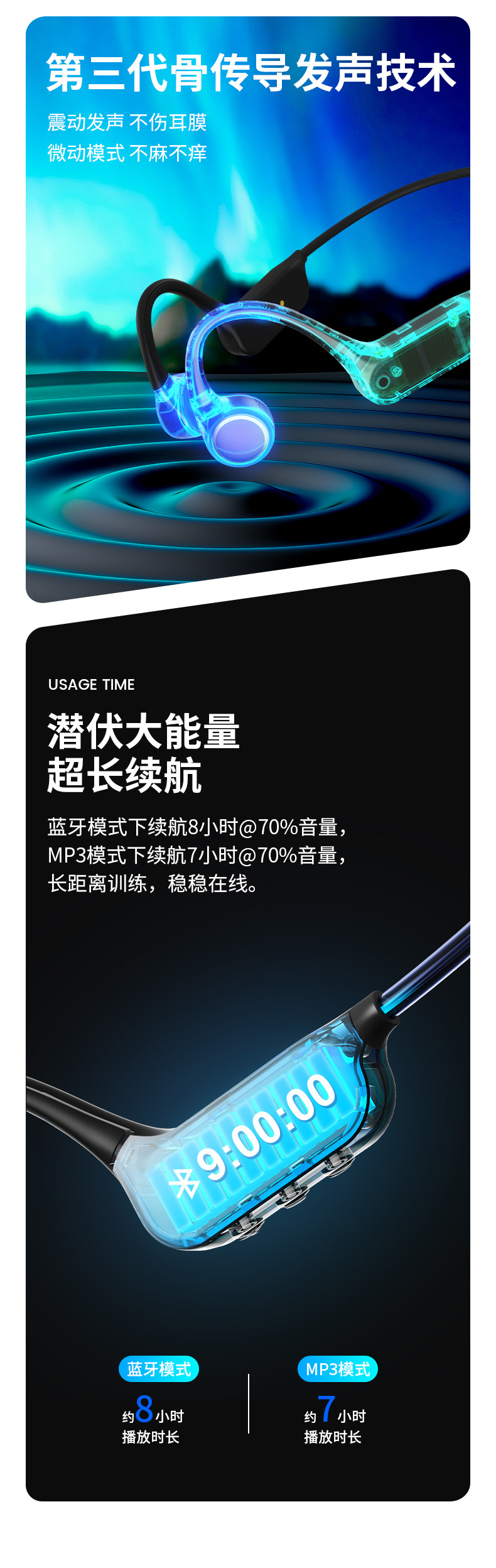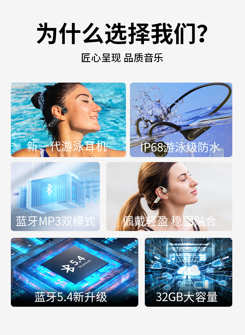 X22真骨传导运动耳机32G内存IPX8级防水户外跑步骑行游泳蓝牙耳机