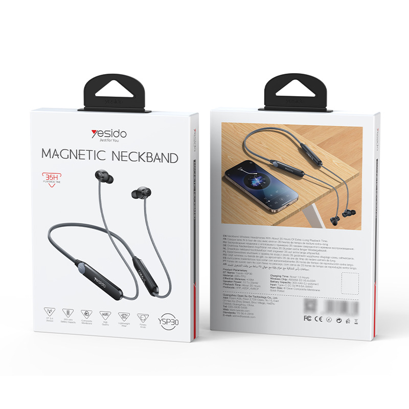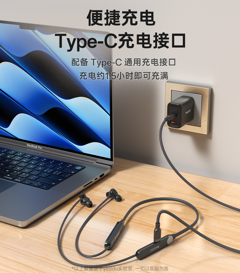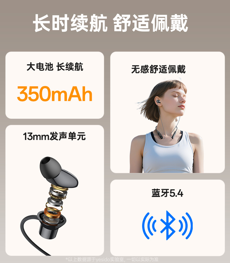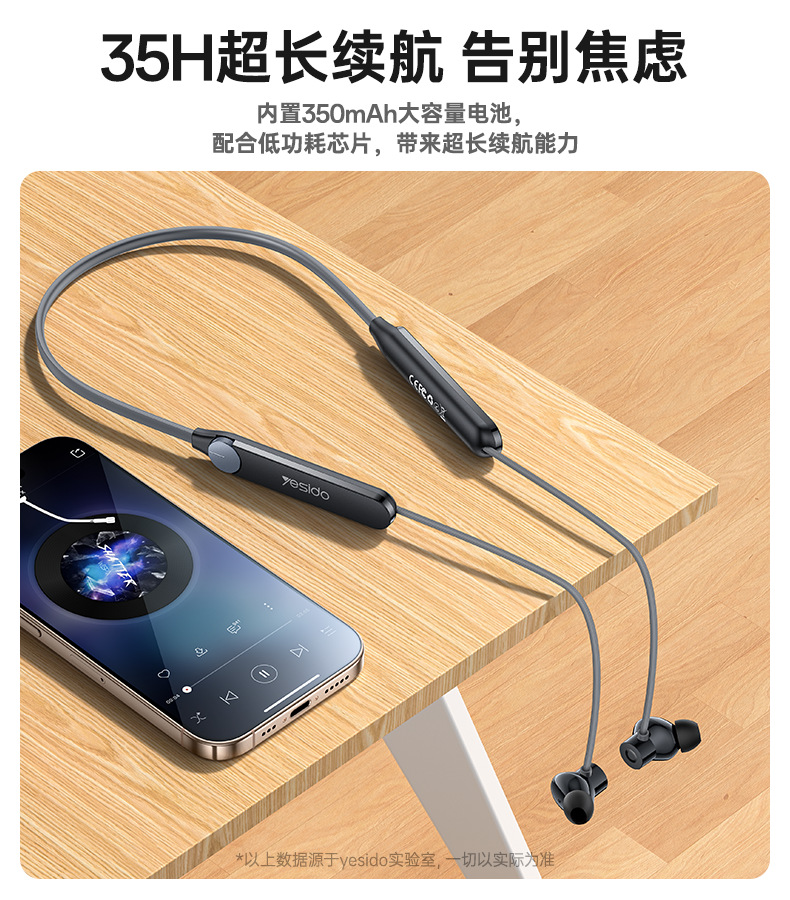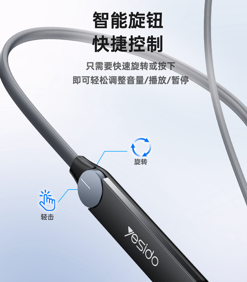 yesido挂脖式入耳式无线耳机颈挂运动跑步磁吸蓝牙耳机