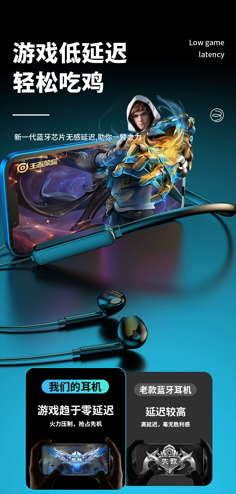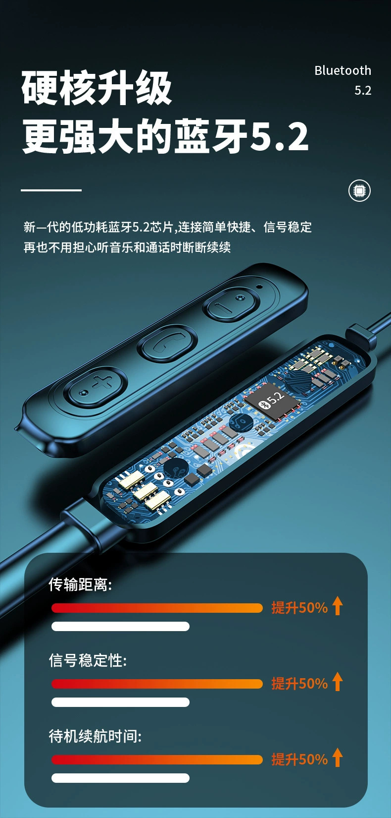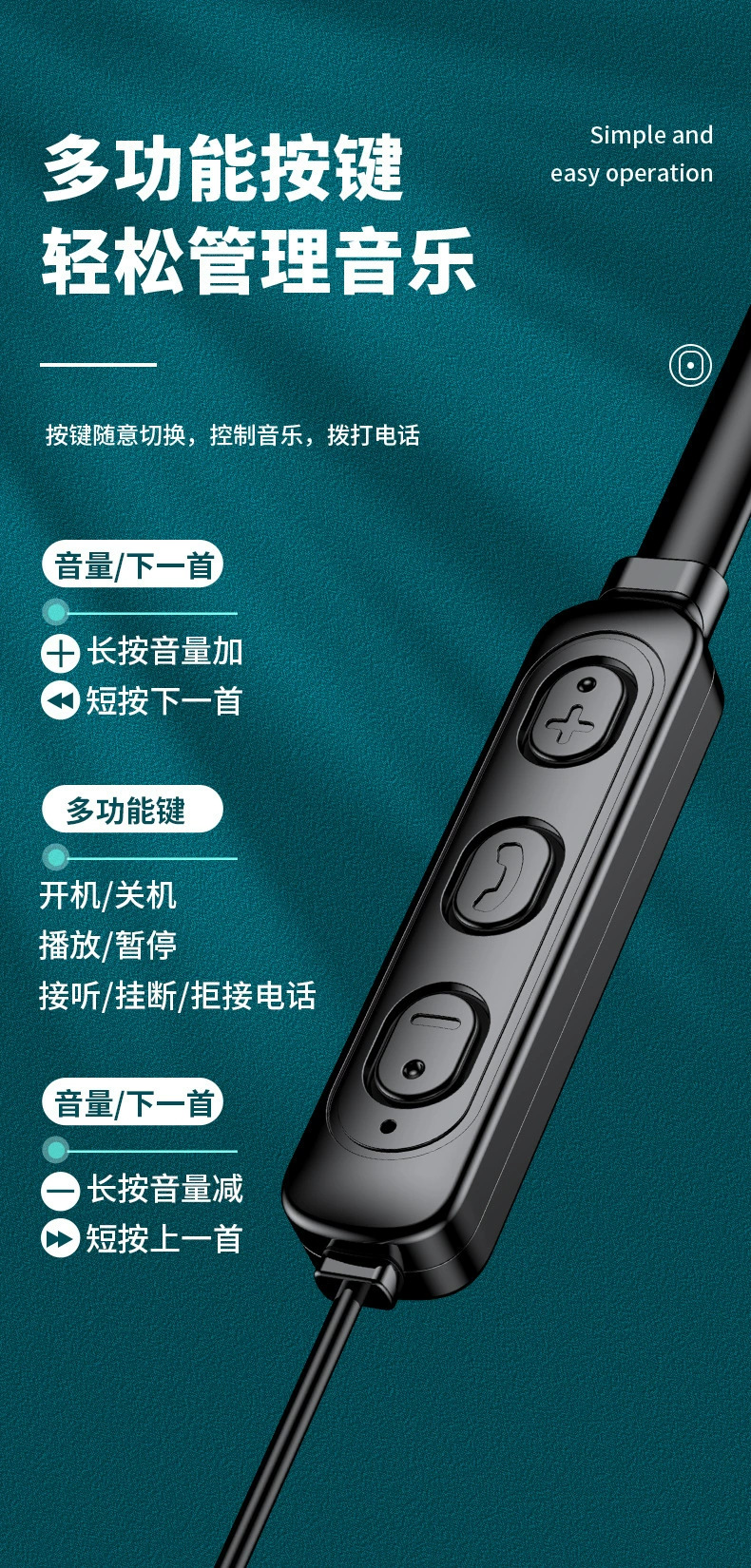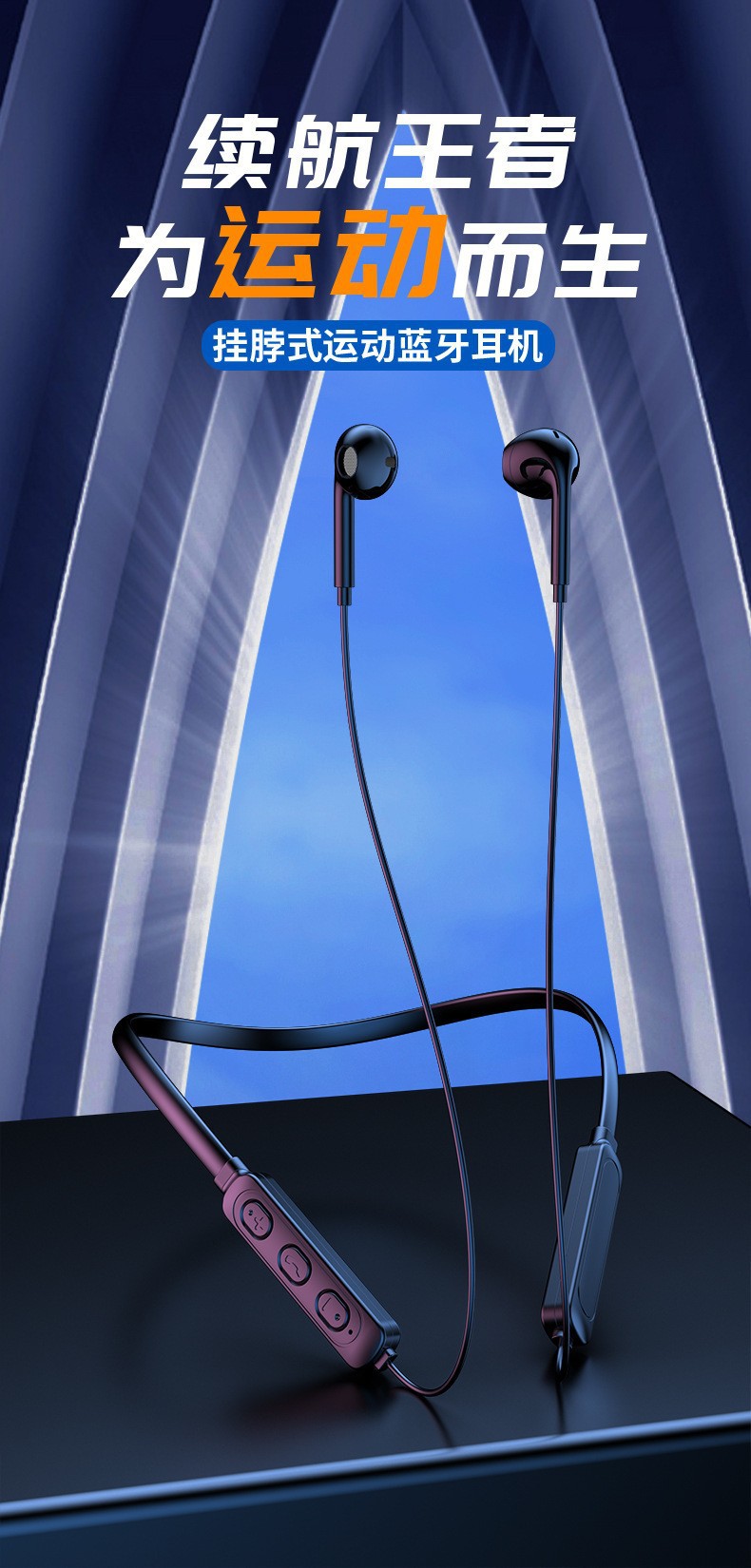 爆款蓝牙无线耳机挂脖运动入耳颈挂式超长续航