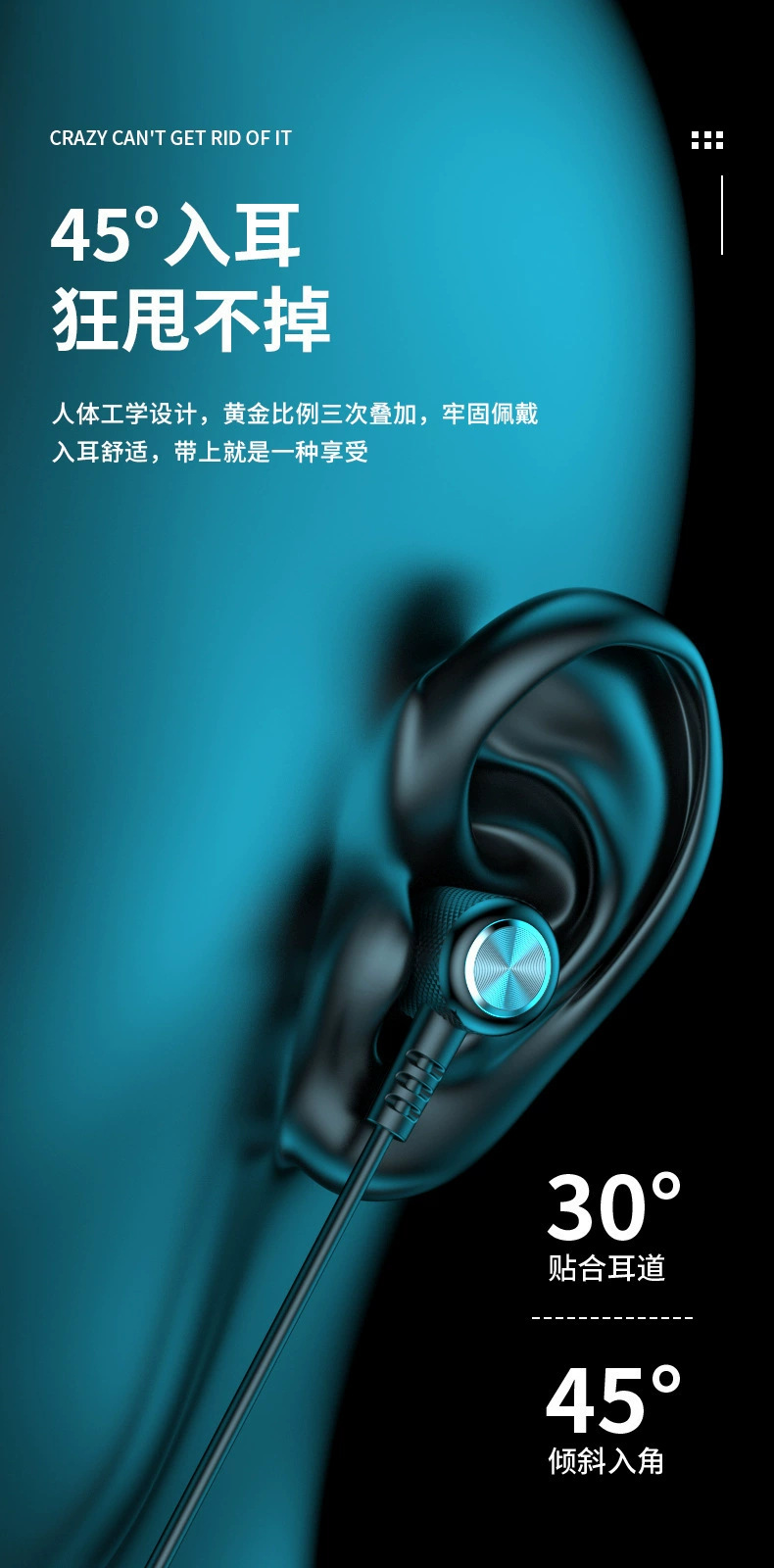typec重低音有线耳机适用华为荣耀vivo游戏入耳式重低音手机耳麦