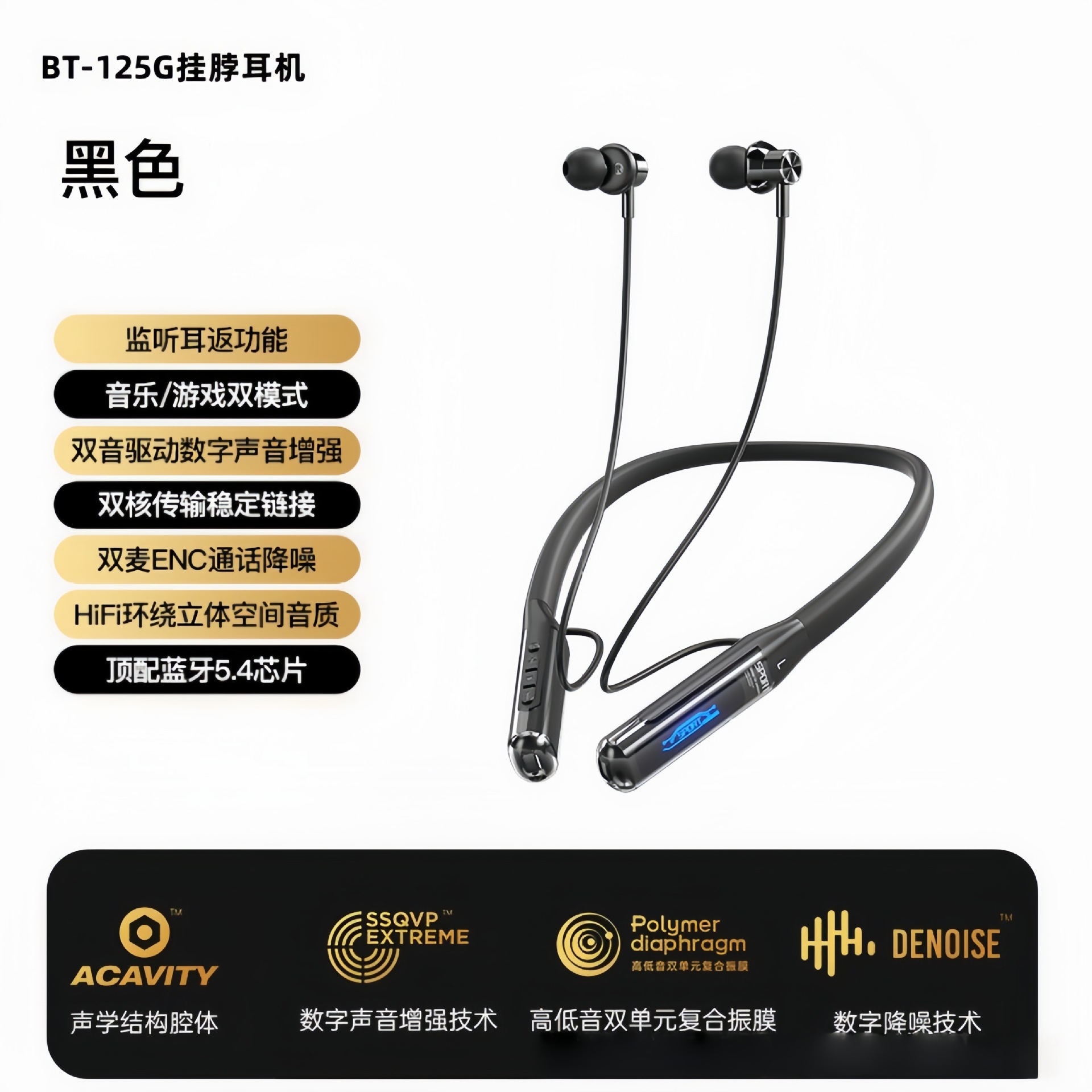 顶棚版枪黑色【手游-K歌-运动-千元无损音效5.3芯片-立体环绕重低音-高清五星通话】