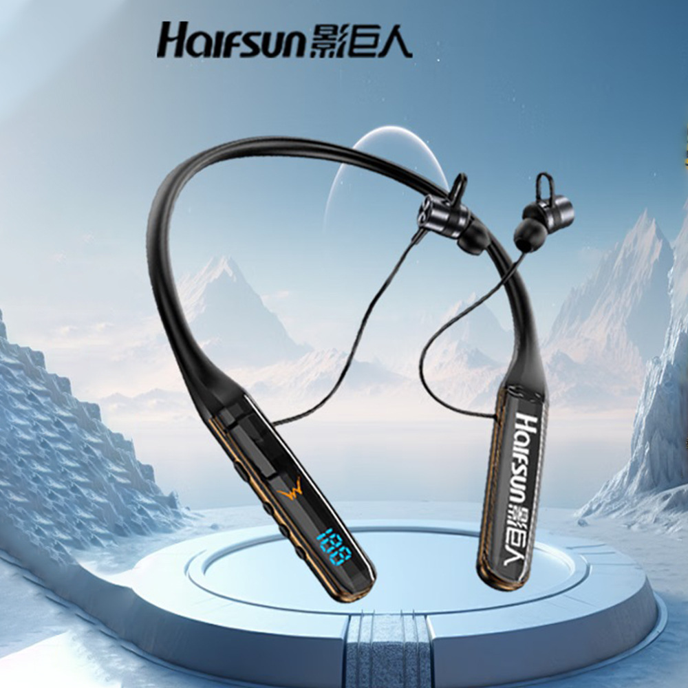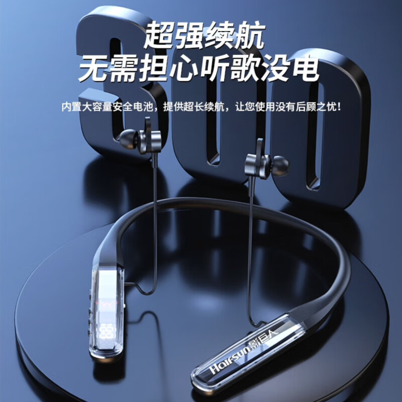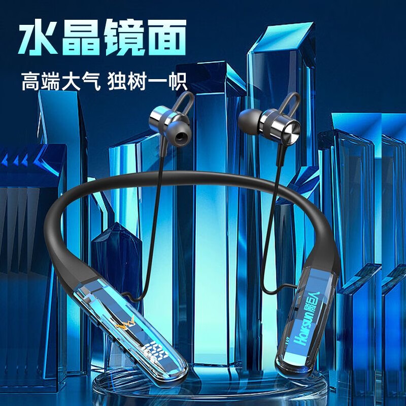 影巨人颈挂式蓝牙耳机水晶数显超长待机男女通用运动电竞游戏耳机
