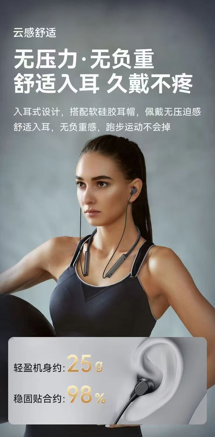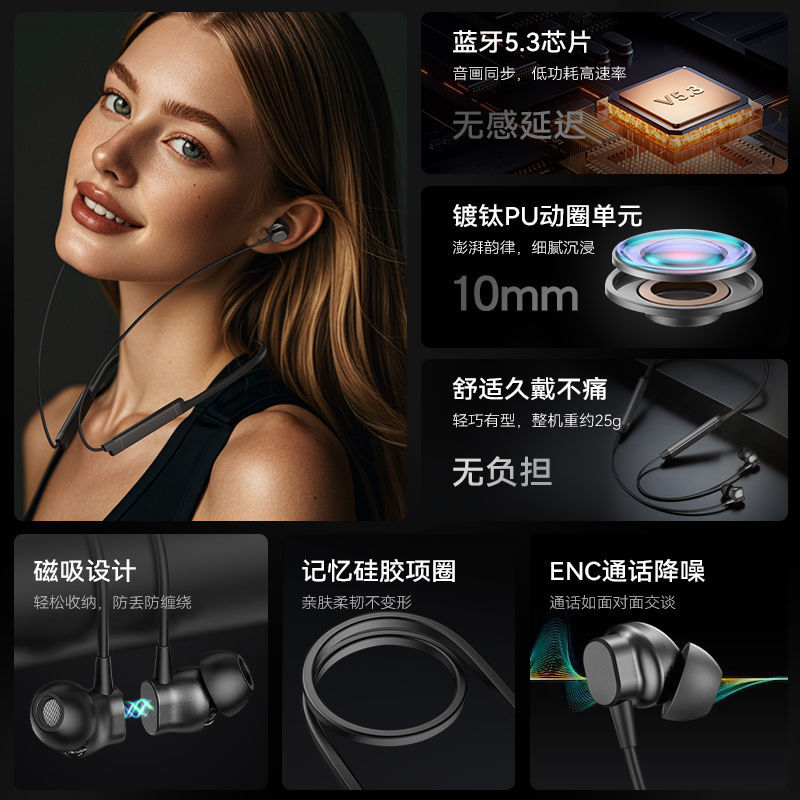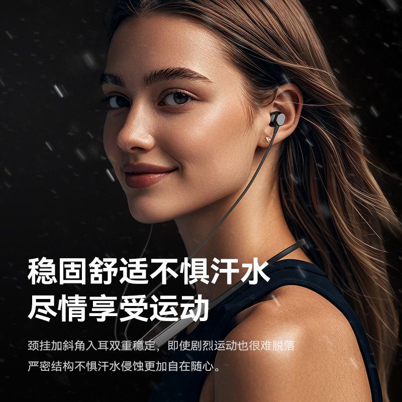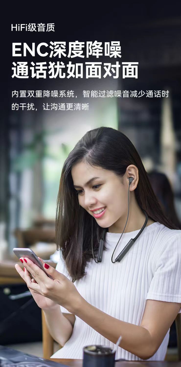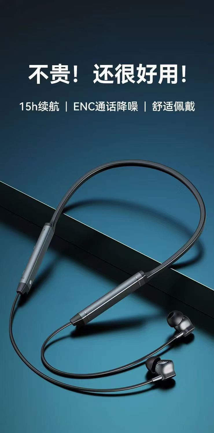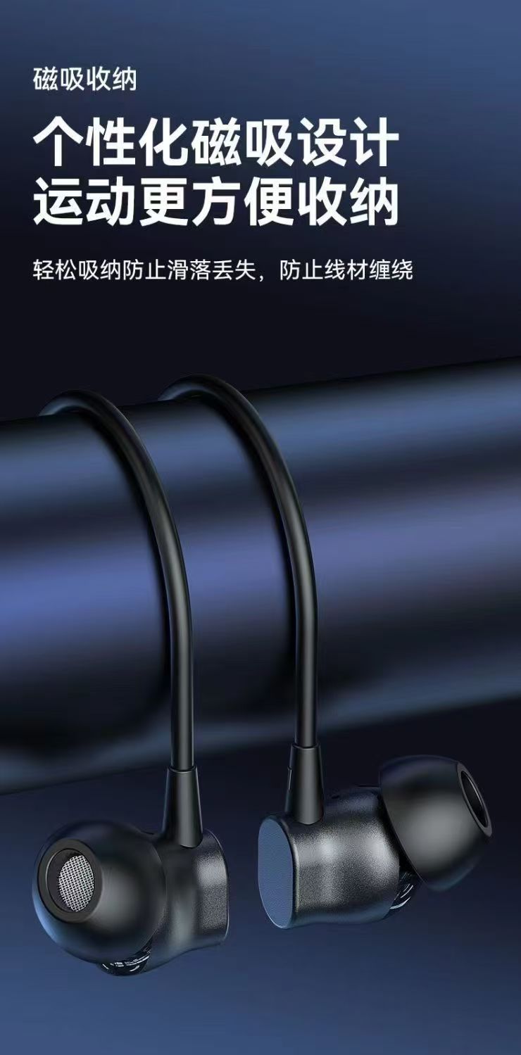 HHW-2无线蓝牙耳机入耳颈挂脖式跑步立体声大容量运动磁吸耳机