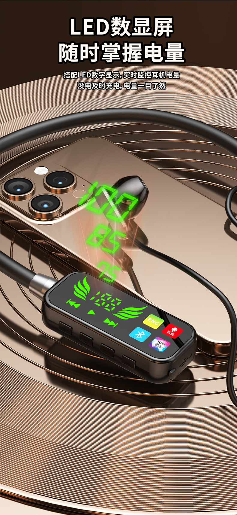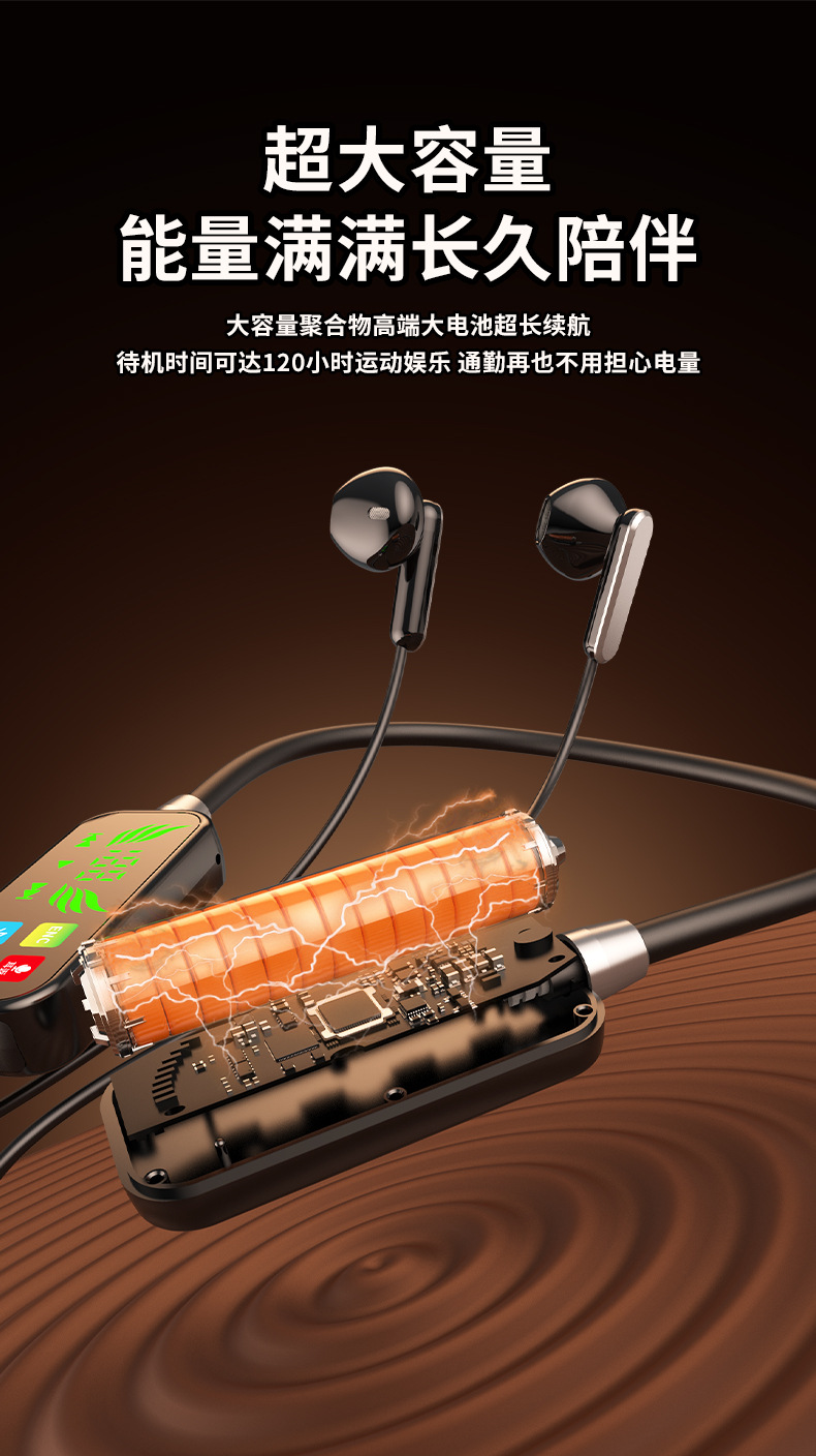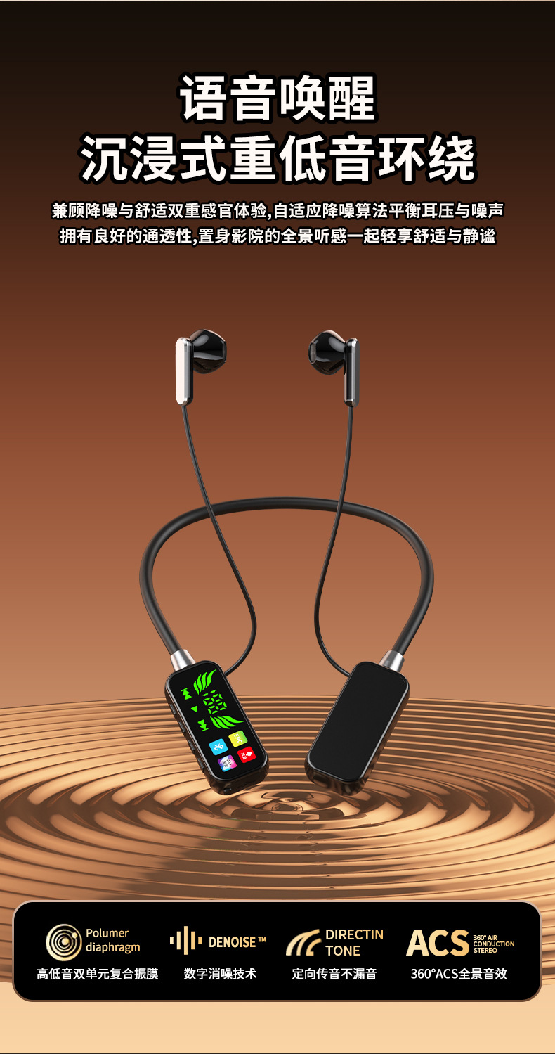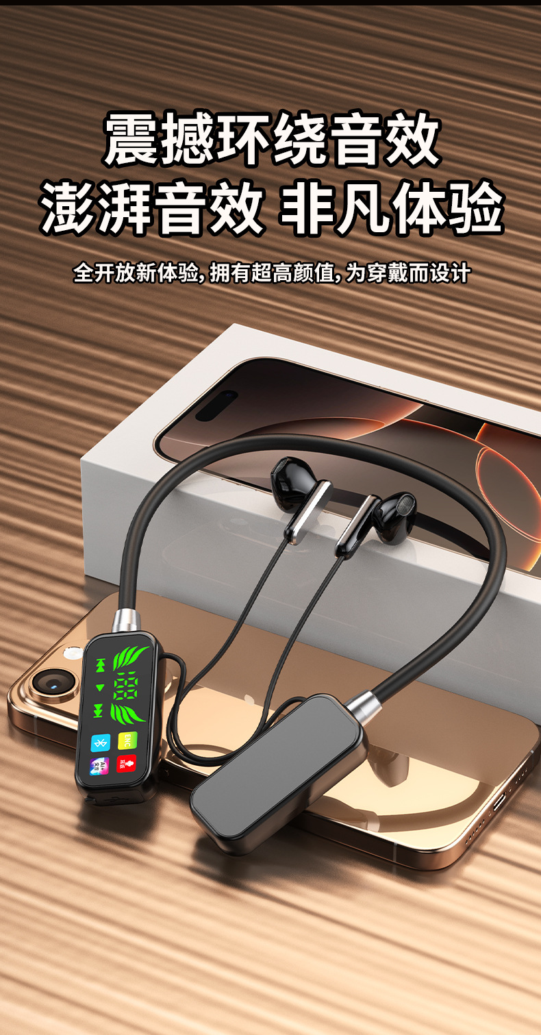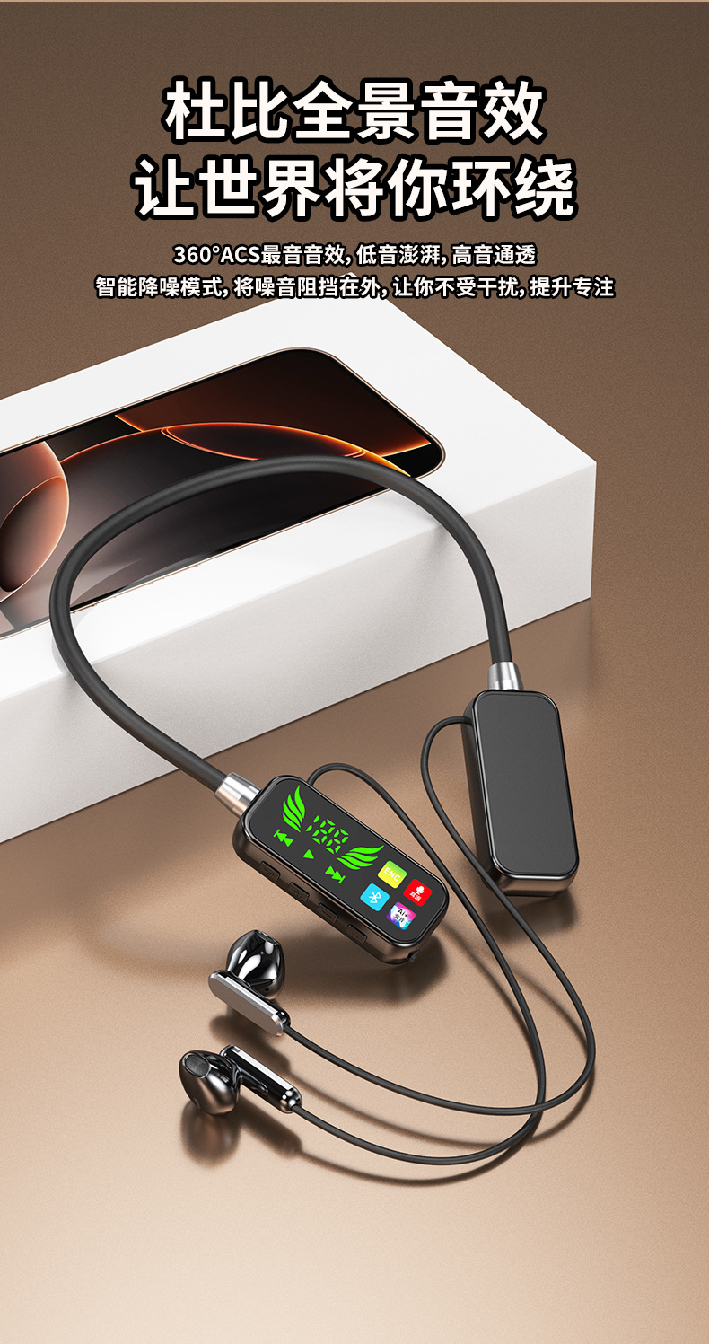 彩屏数显 K歌 直播 挂脖蓝牙耳机超长续航无线运动耳机