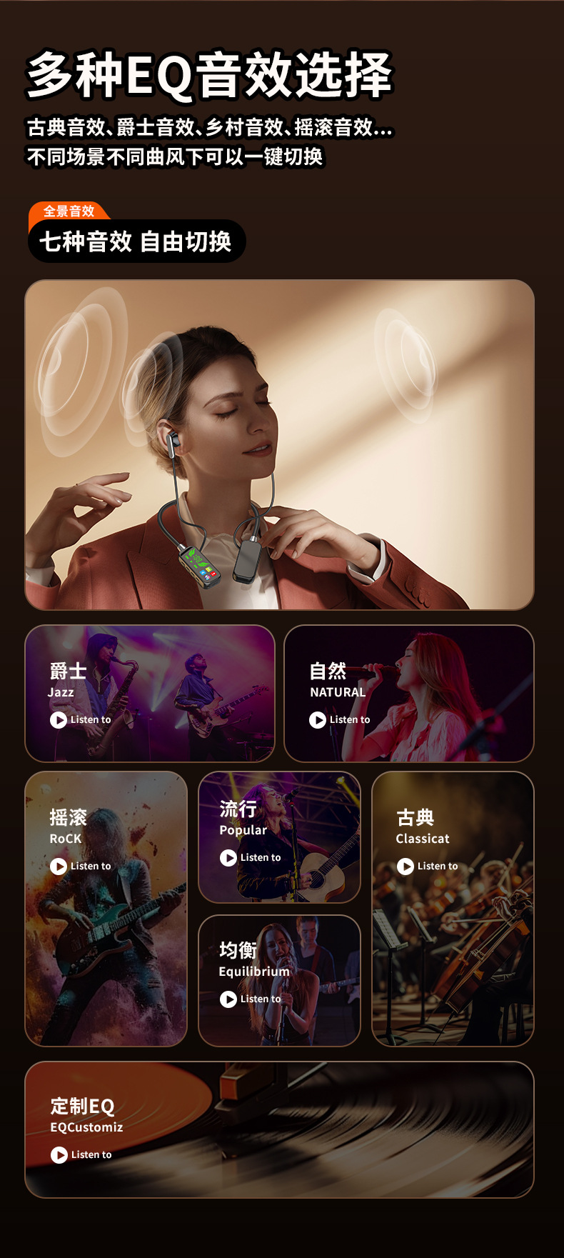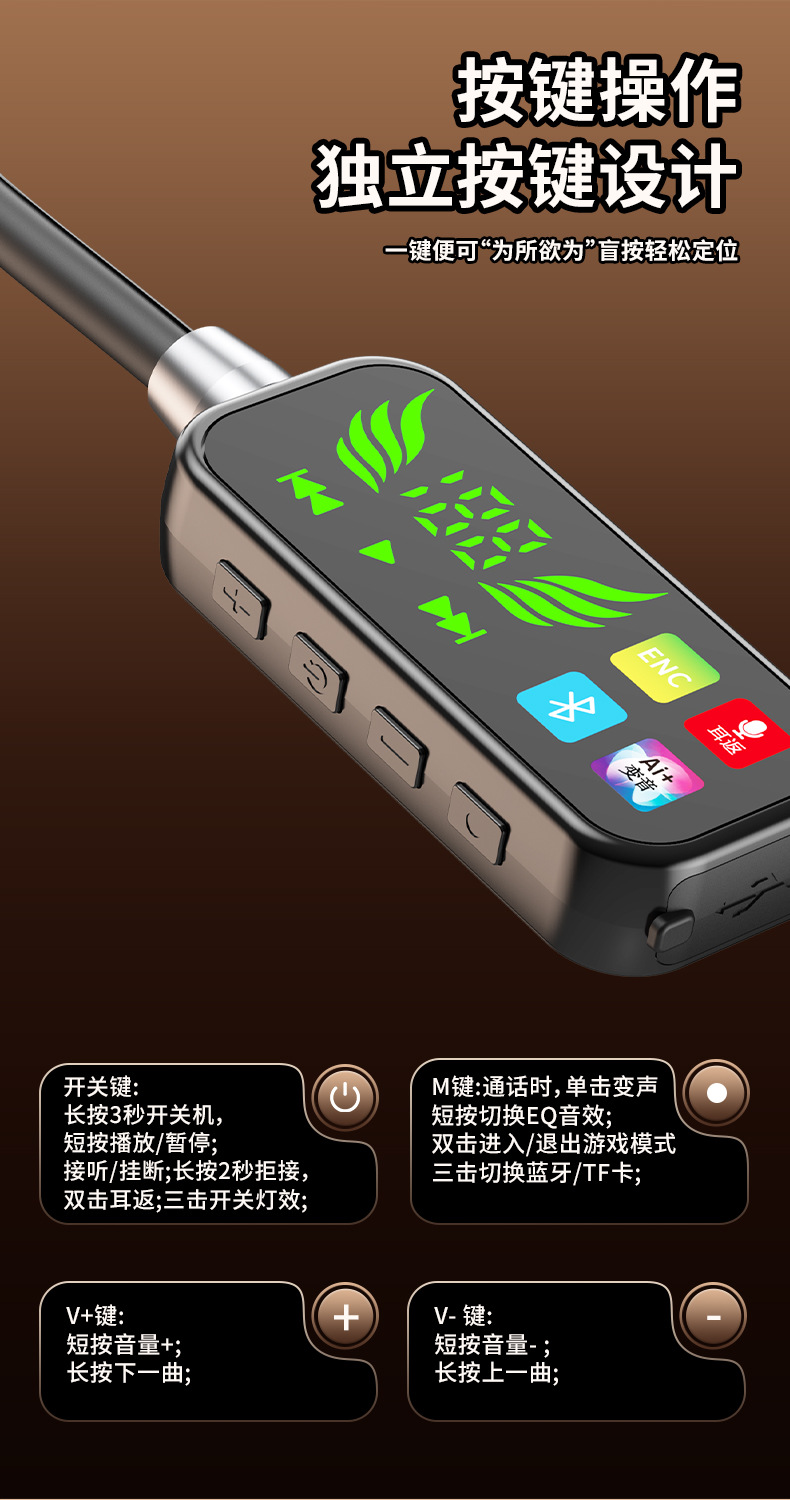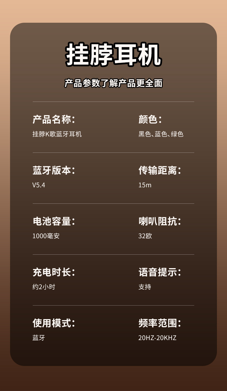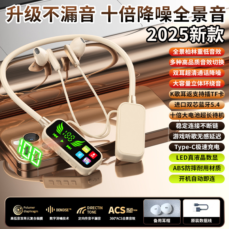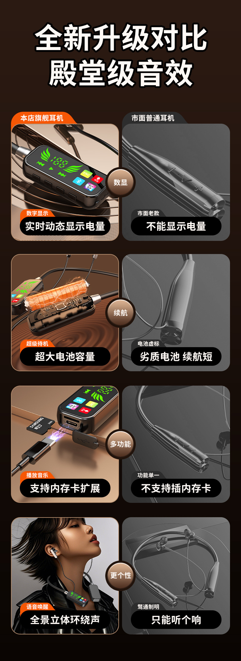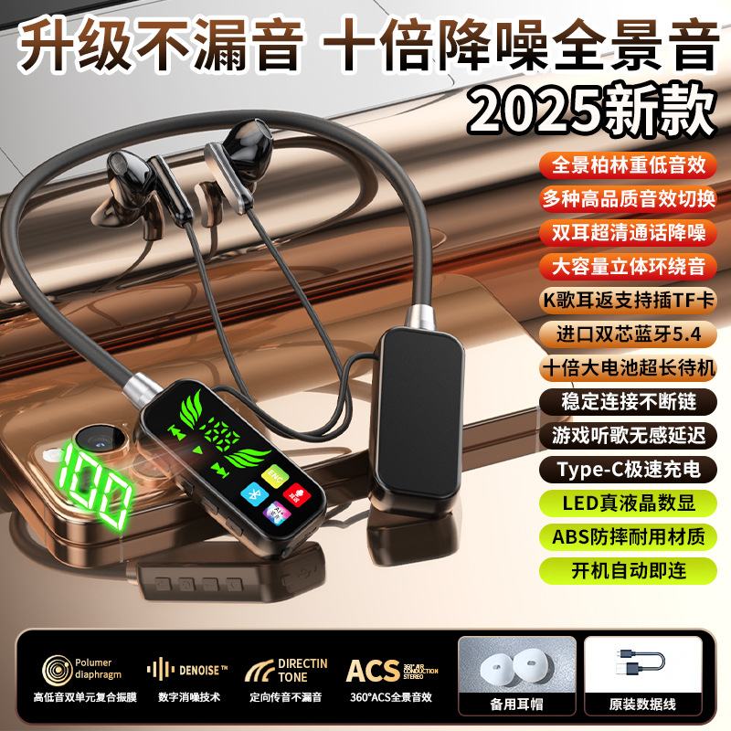 彩屏数显 K歌 直播 挂脖蓝牙耳机超长续航无线运动耳机
