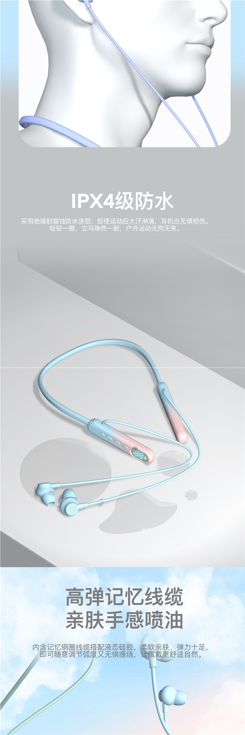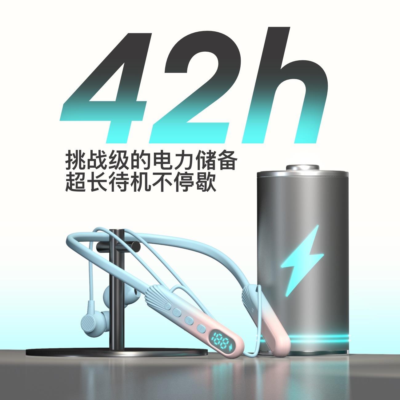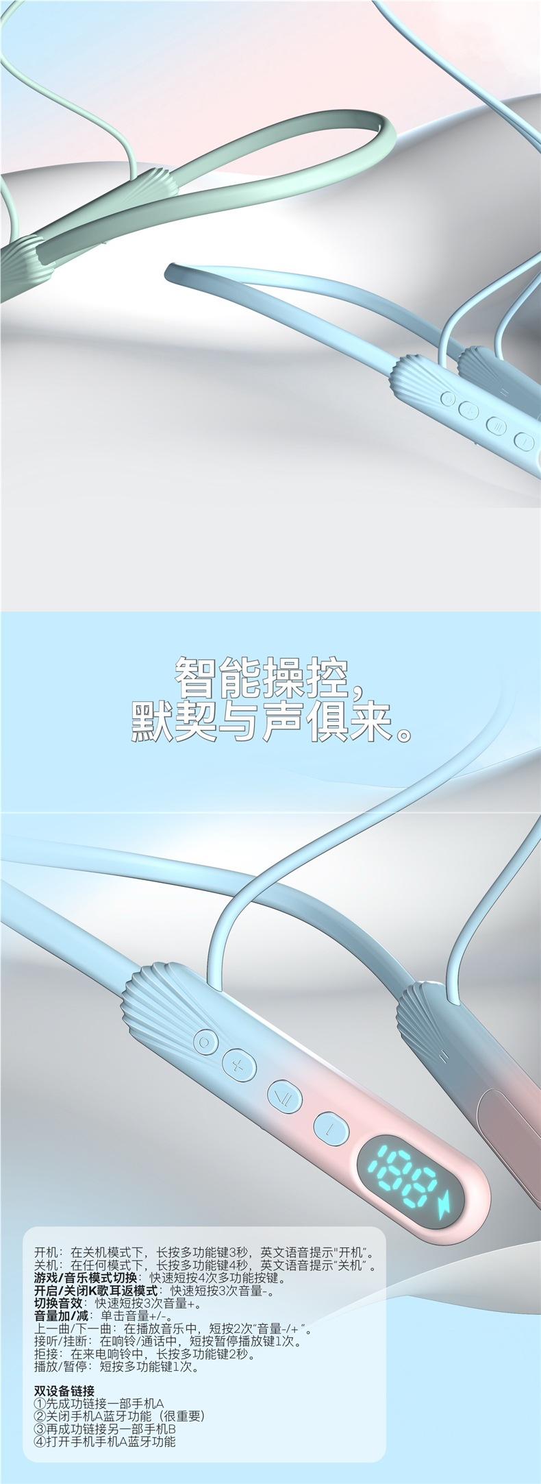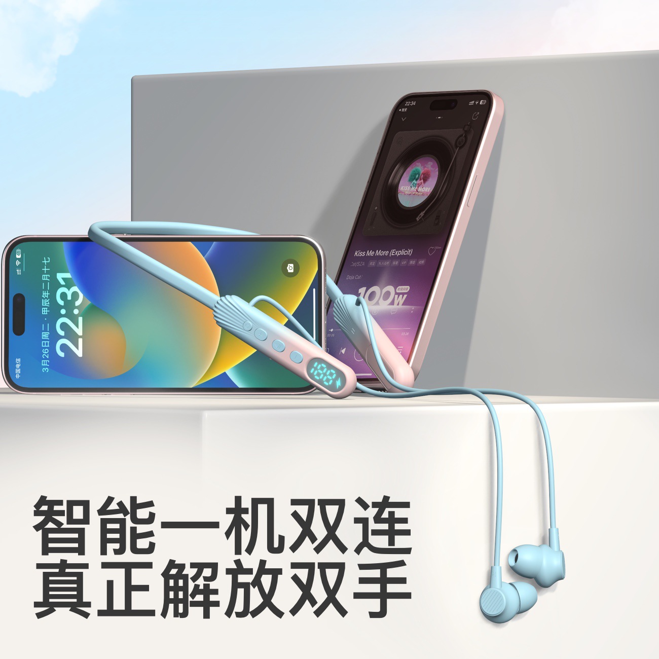 女生无线挂脖式蓝牙耳机新款降噪颈挂运动耳机超长续航大电量