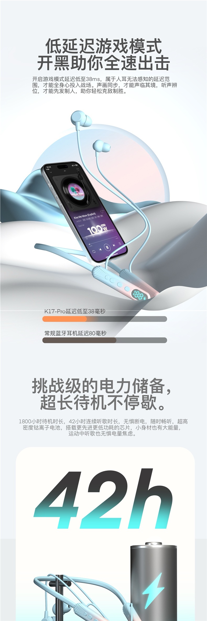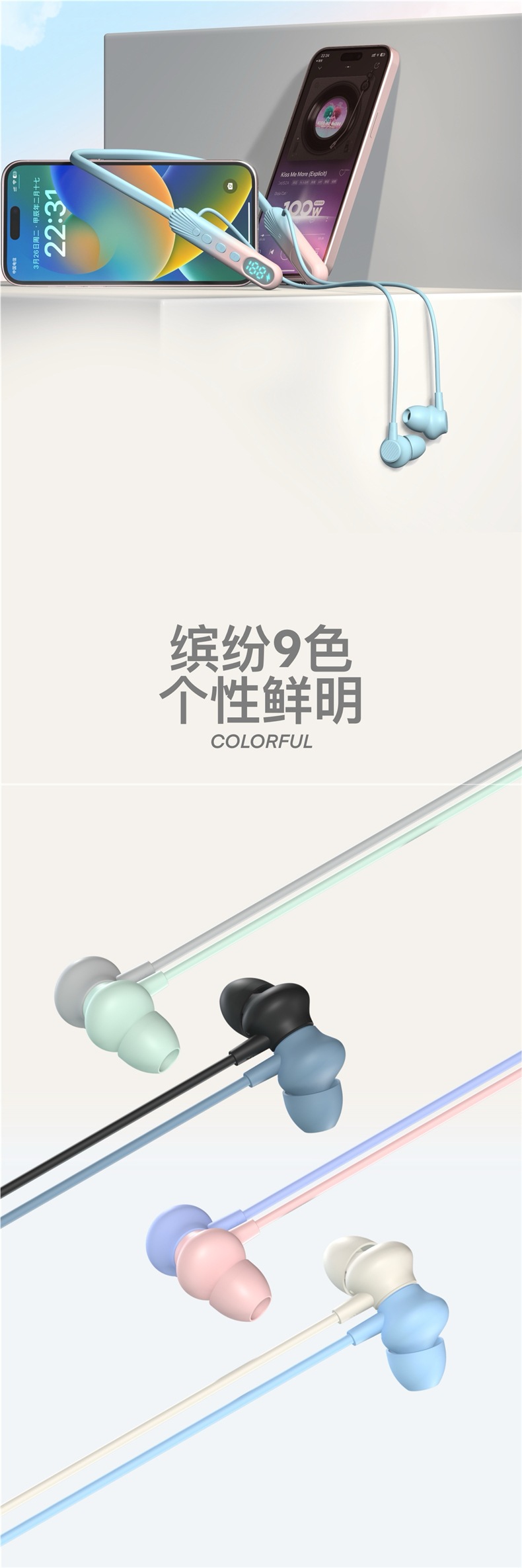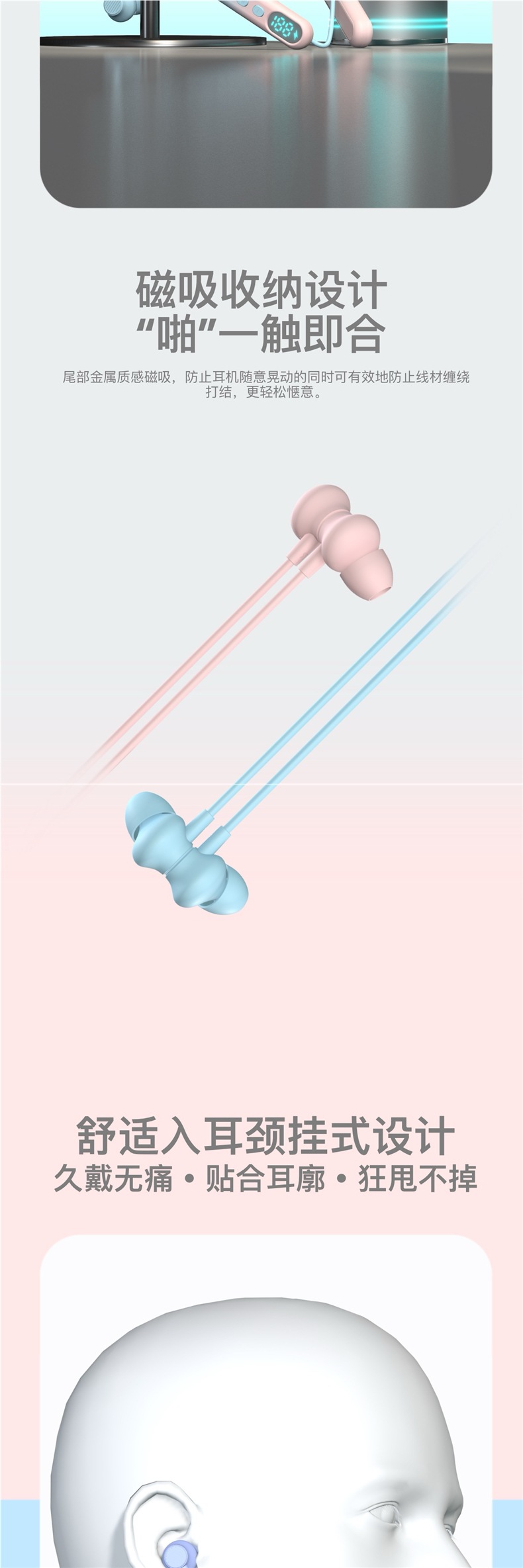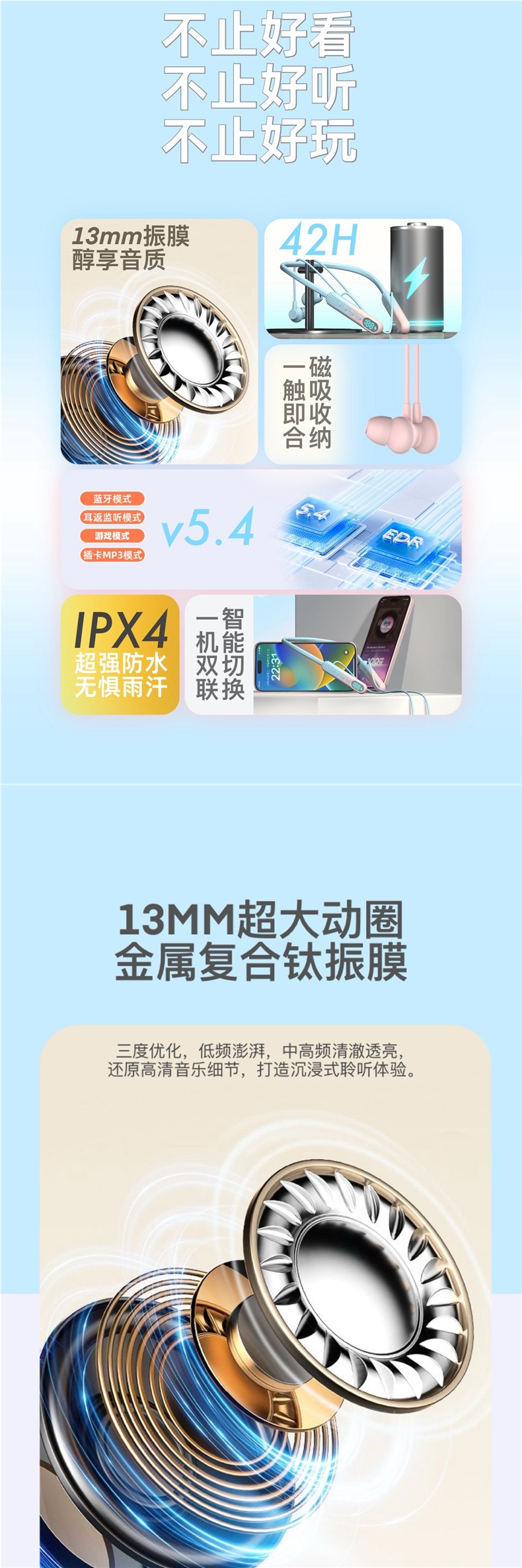 女生无线挂脖式蓝牙耳机新款降噪颈挂运动耳机超长续航大电量