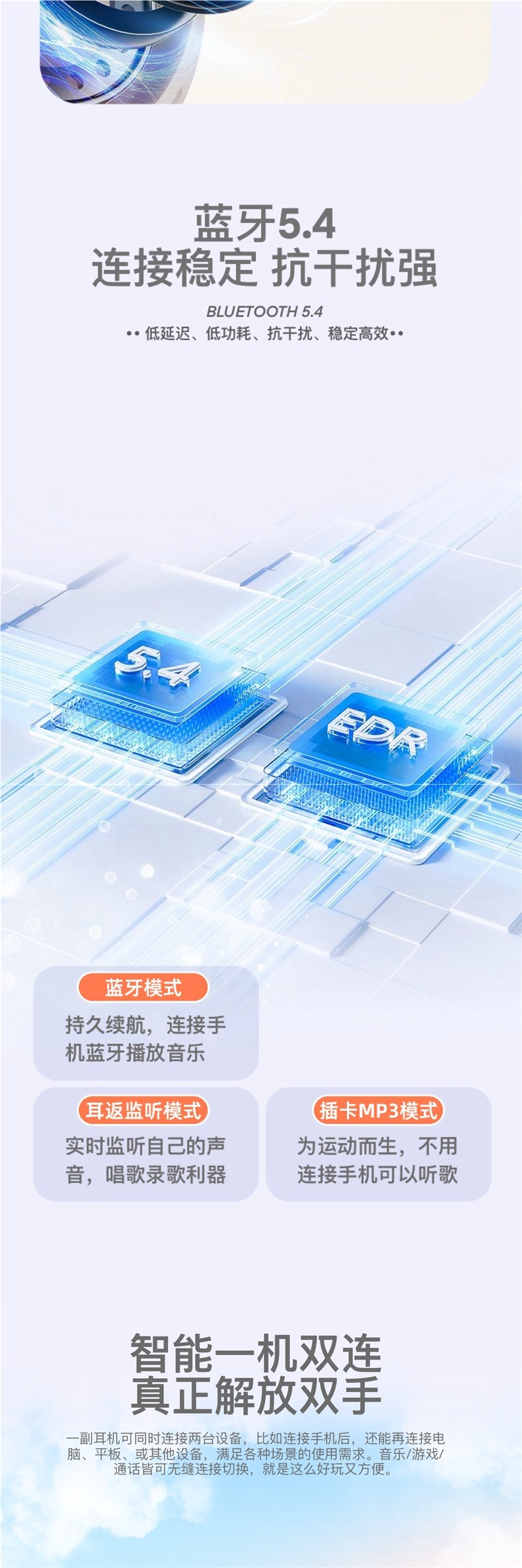 - 渐变白蓝【电量显示长续航8种音效多种模式】