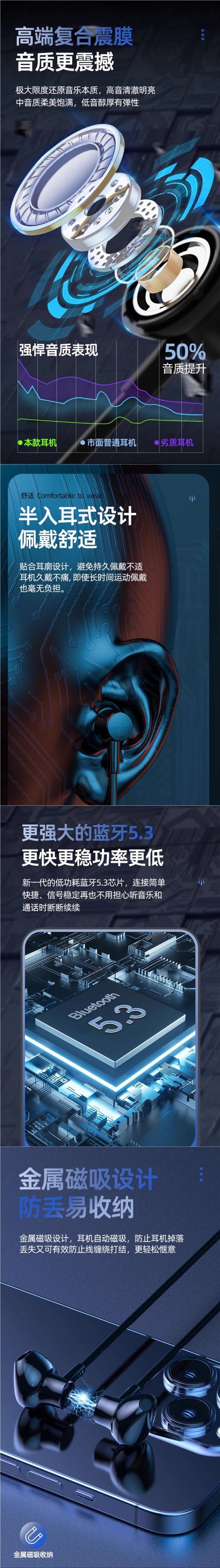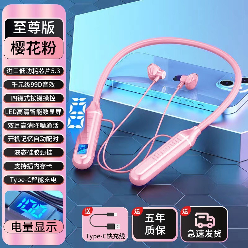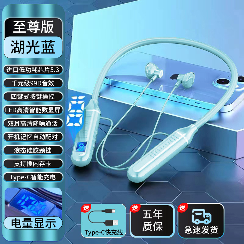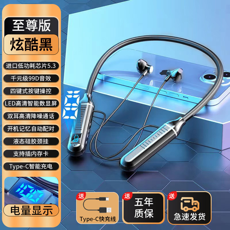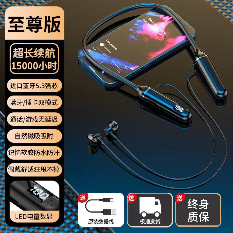 颈挂脖式运动蓝牙耳机新款无线超长续航大电量半入耳式