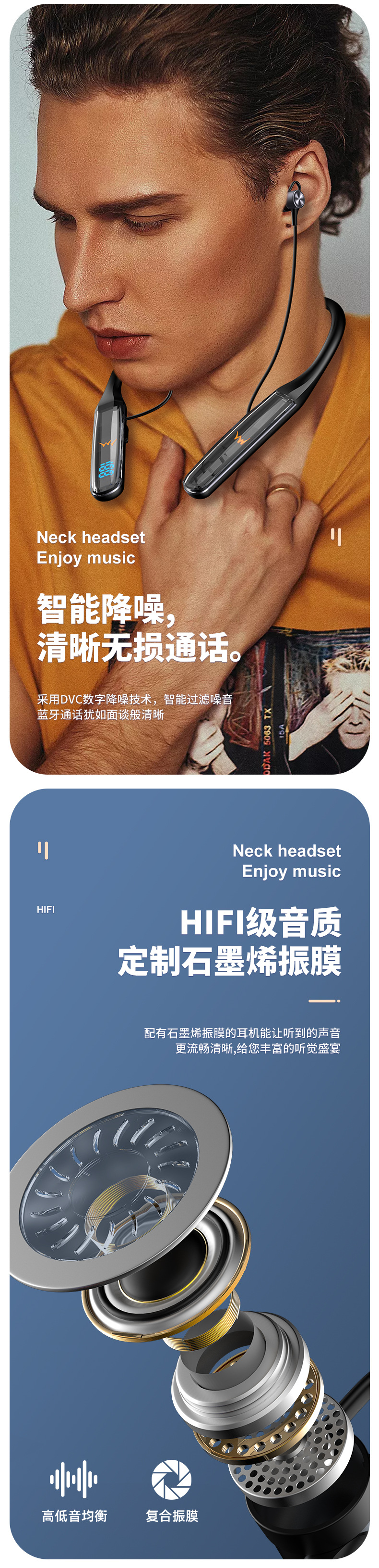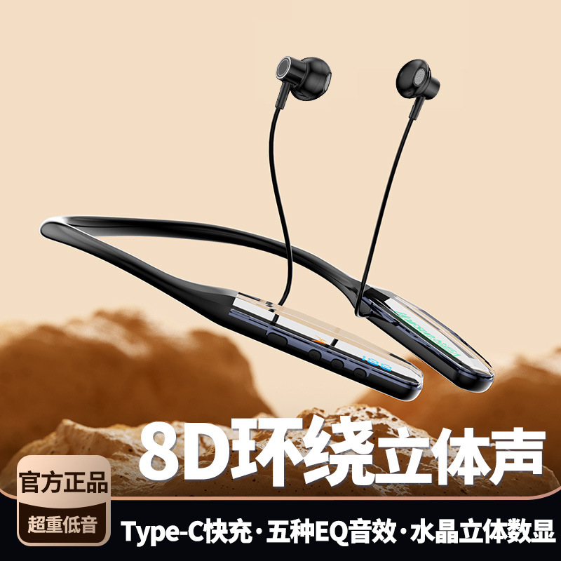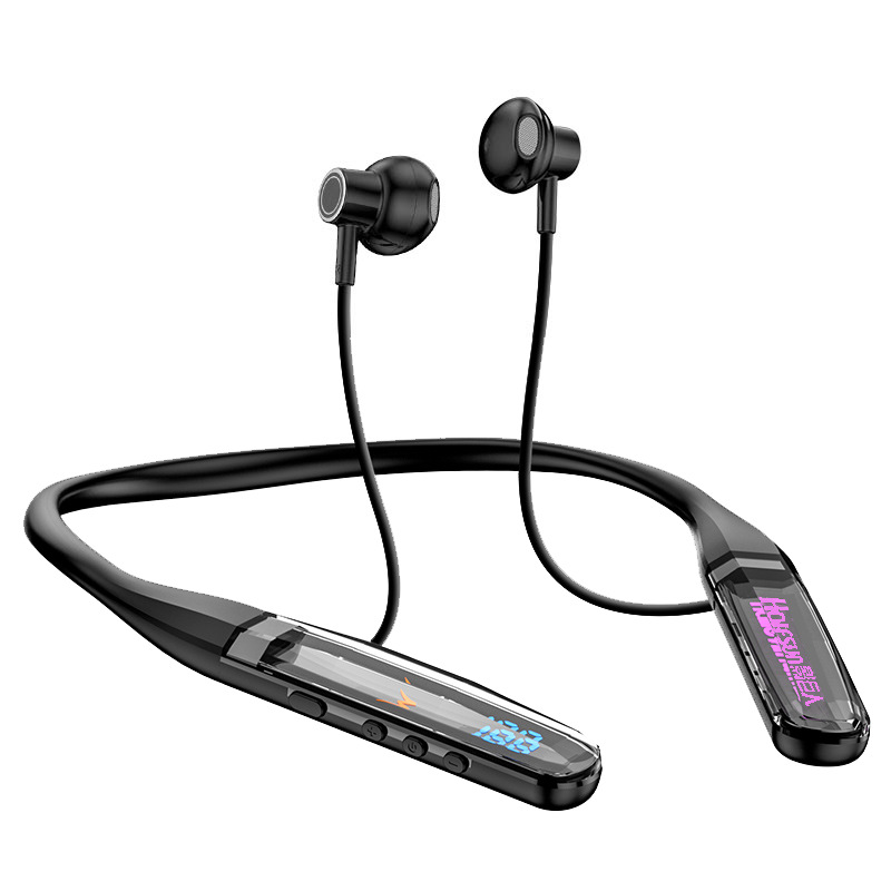 颈挂式无线蓝牙耳机水晶数显超长待机挂脖耳机男女通用运动耳机