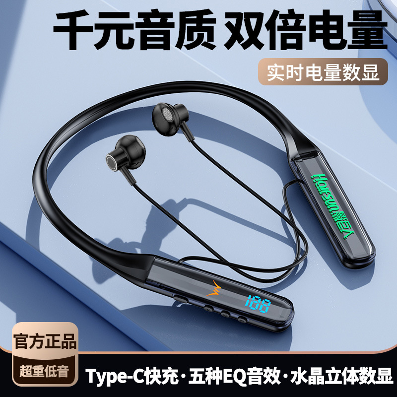 新款挂脖式蓝牙耳机大电量带数显游戏运动颈挂耳机可插卡使用