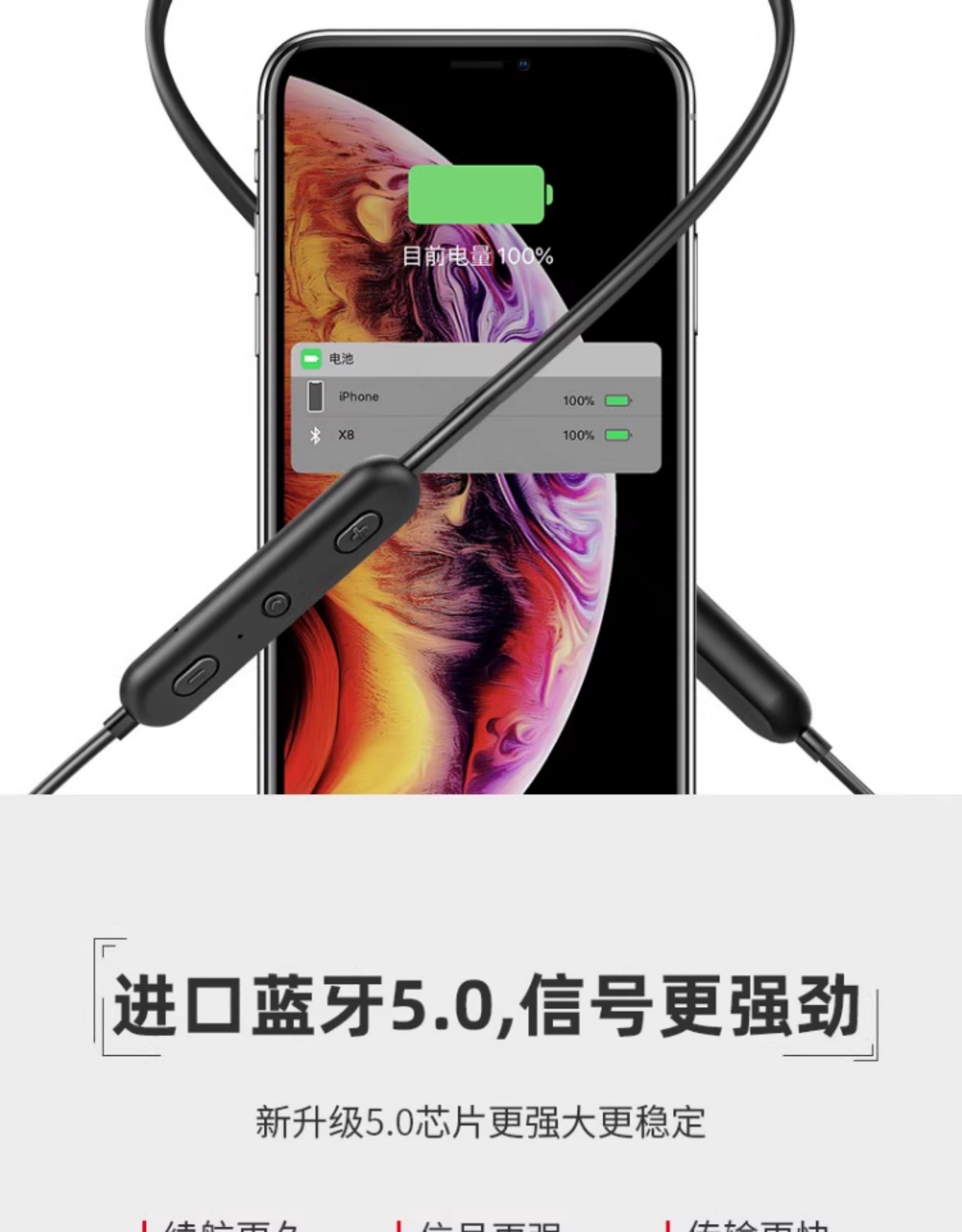 严选蓝牙无线耳机挂脖运动双耳入耳颈挂式超长待机续航
