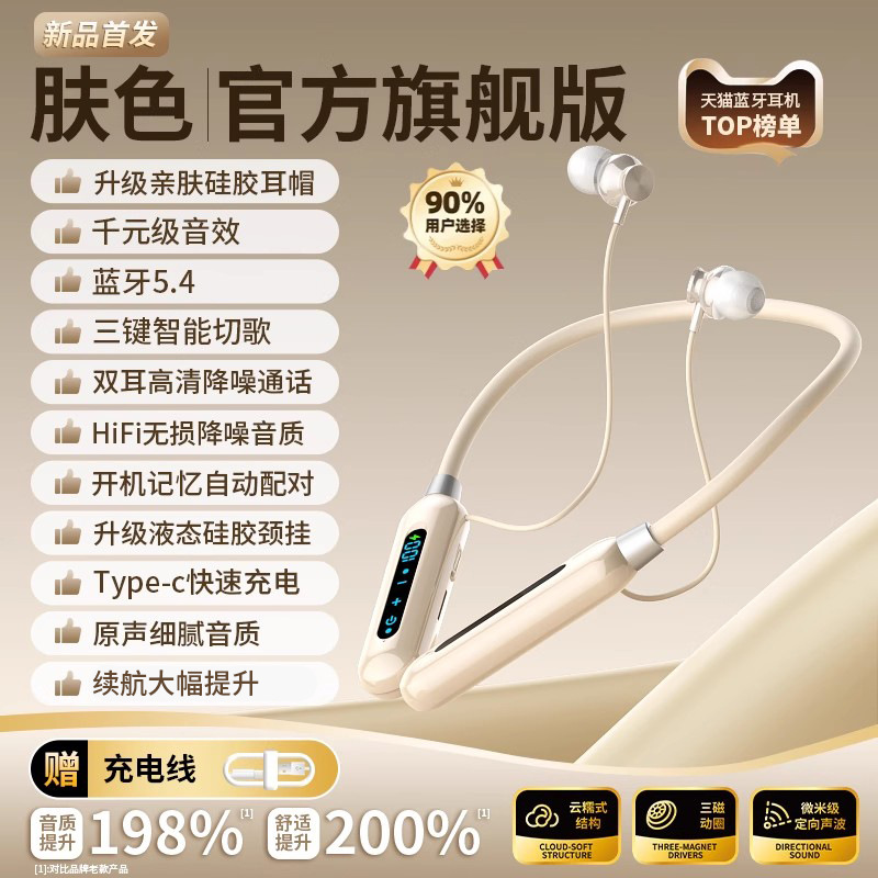 - 肤色【旗舰版】9D重低音★金属磁吸★精准电量显示★续航大幅提升