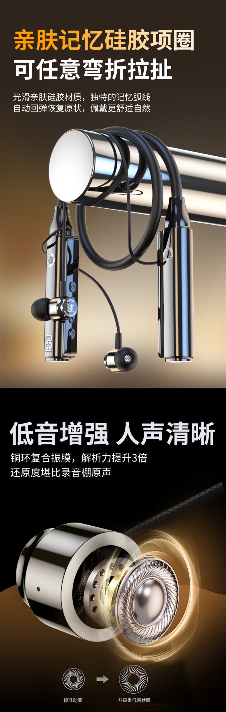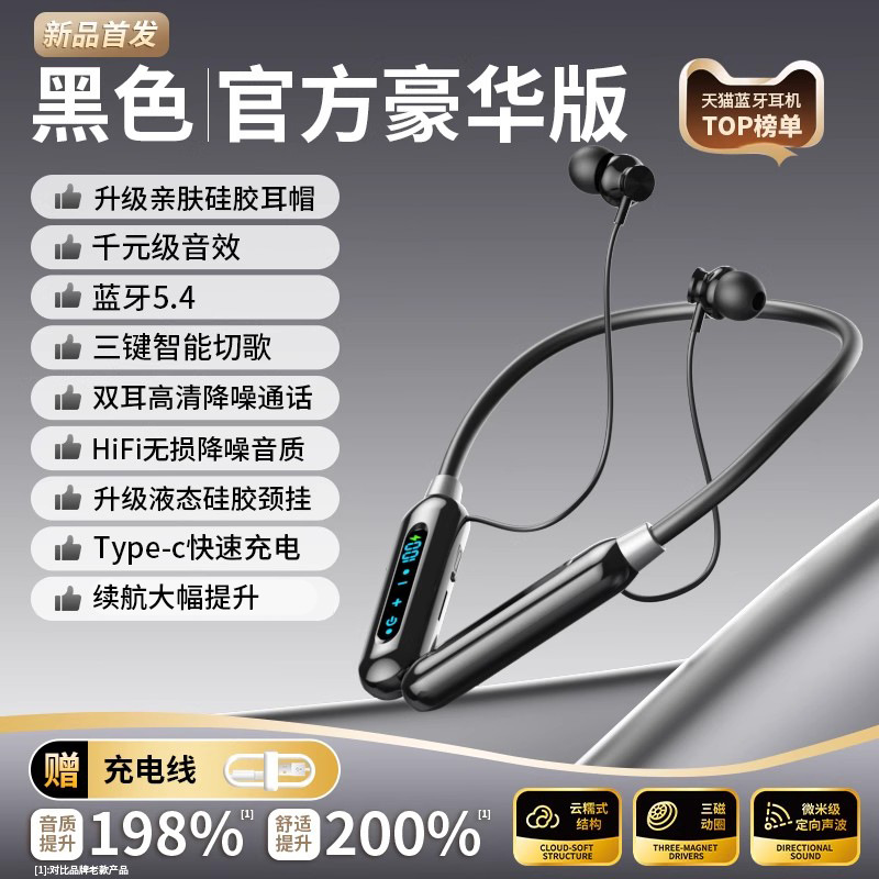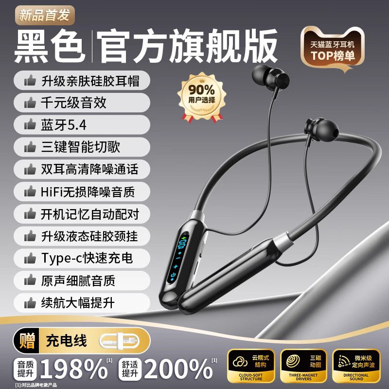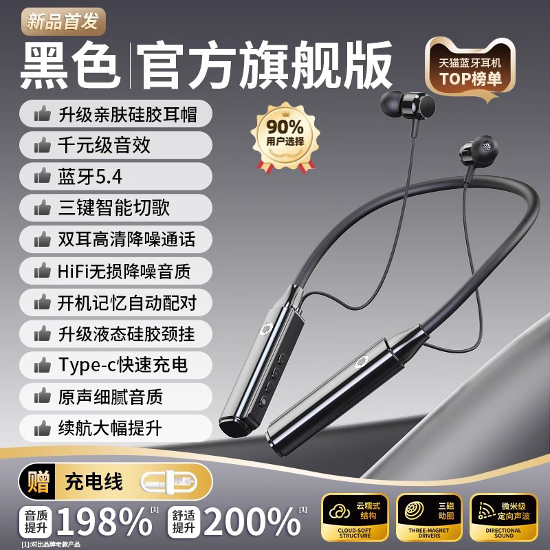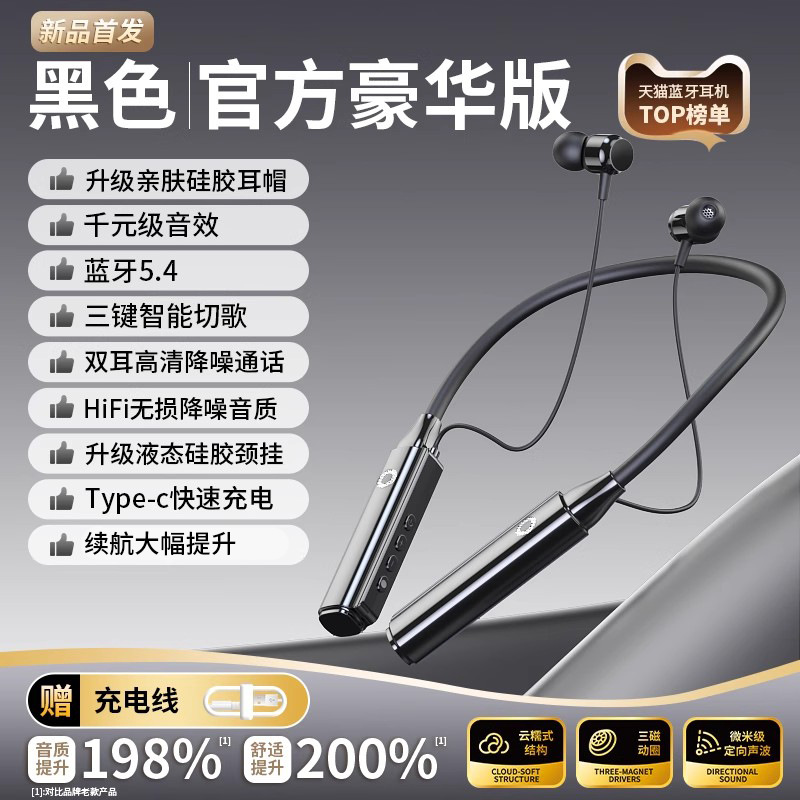 官方正品真无线蓝牙耳机颈挂脖式高音质降噪超长续航跑步2025新款