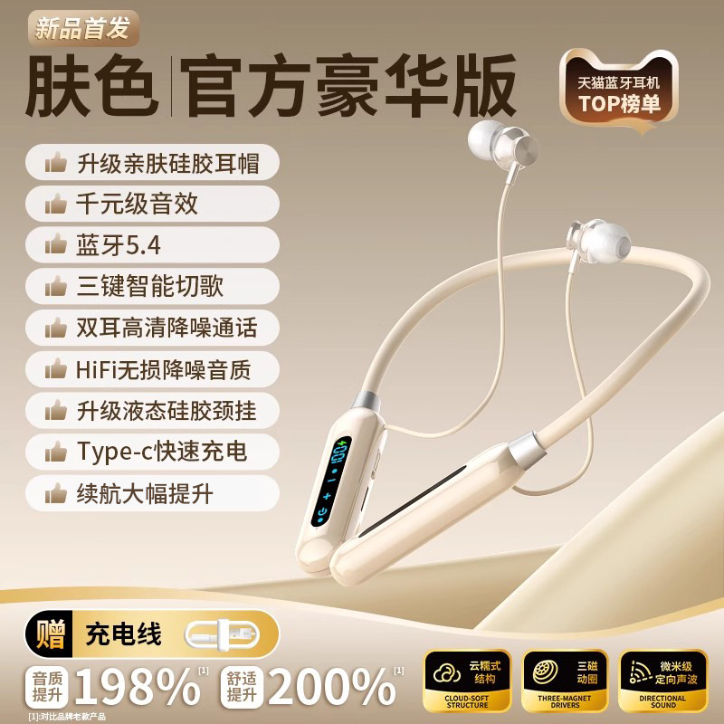 - 肤色【豪华版】9D重低音★金属磁吸★精准电量显示★续航大幅提升