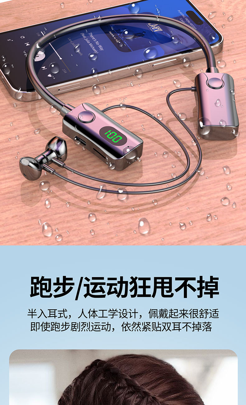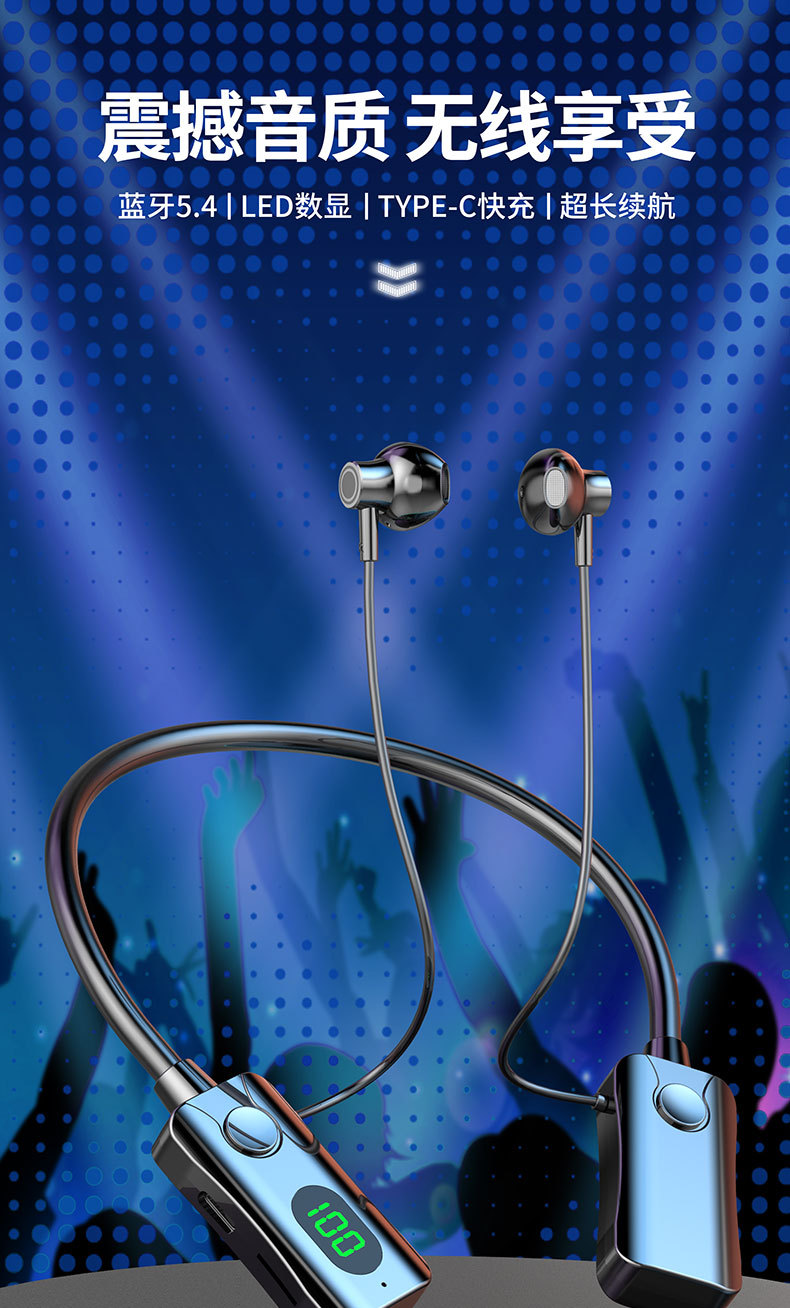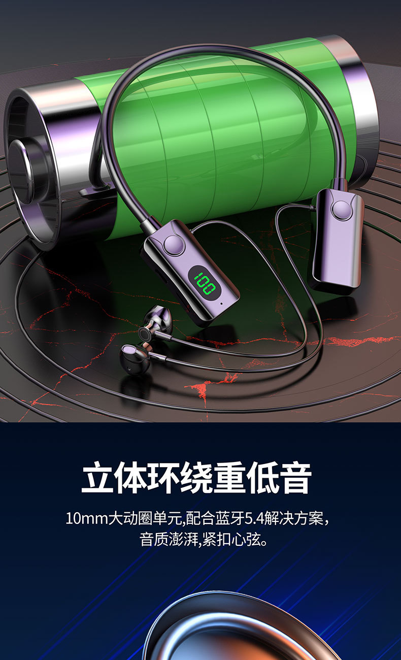 挂脖式耳机蓝牙新款超长续航大电量半入耳无线降噪高音质运动