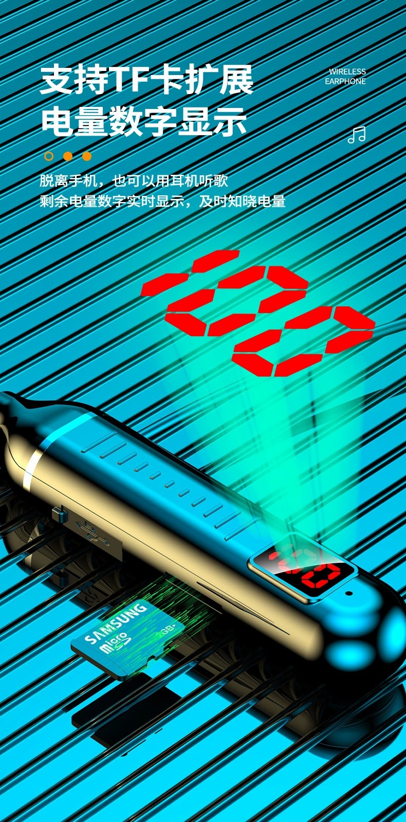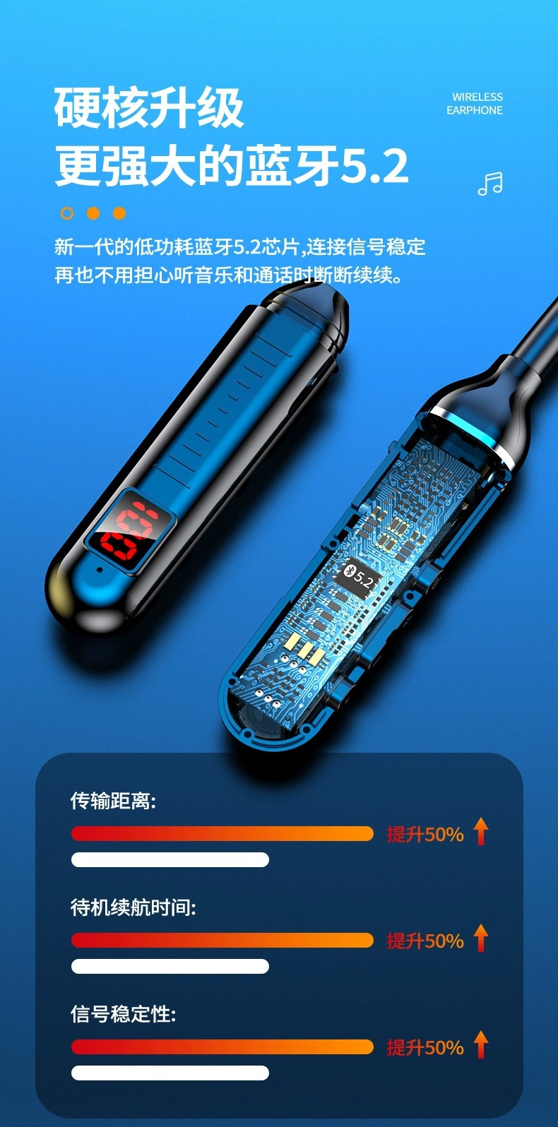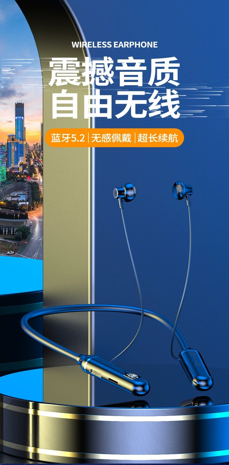 无线蓝牙耳机超长续航待机大电量数显运动挂脖式蓝牙耳机