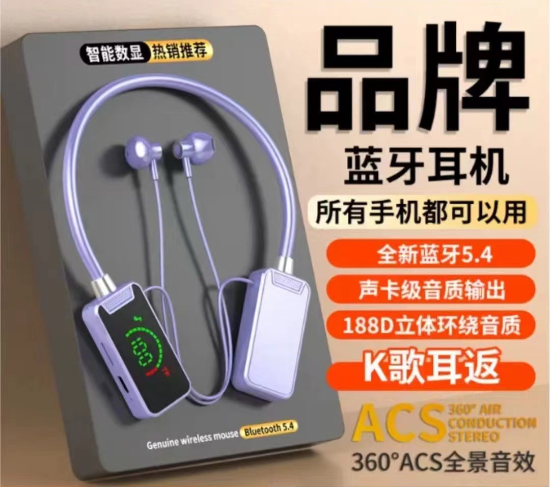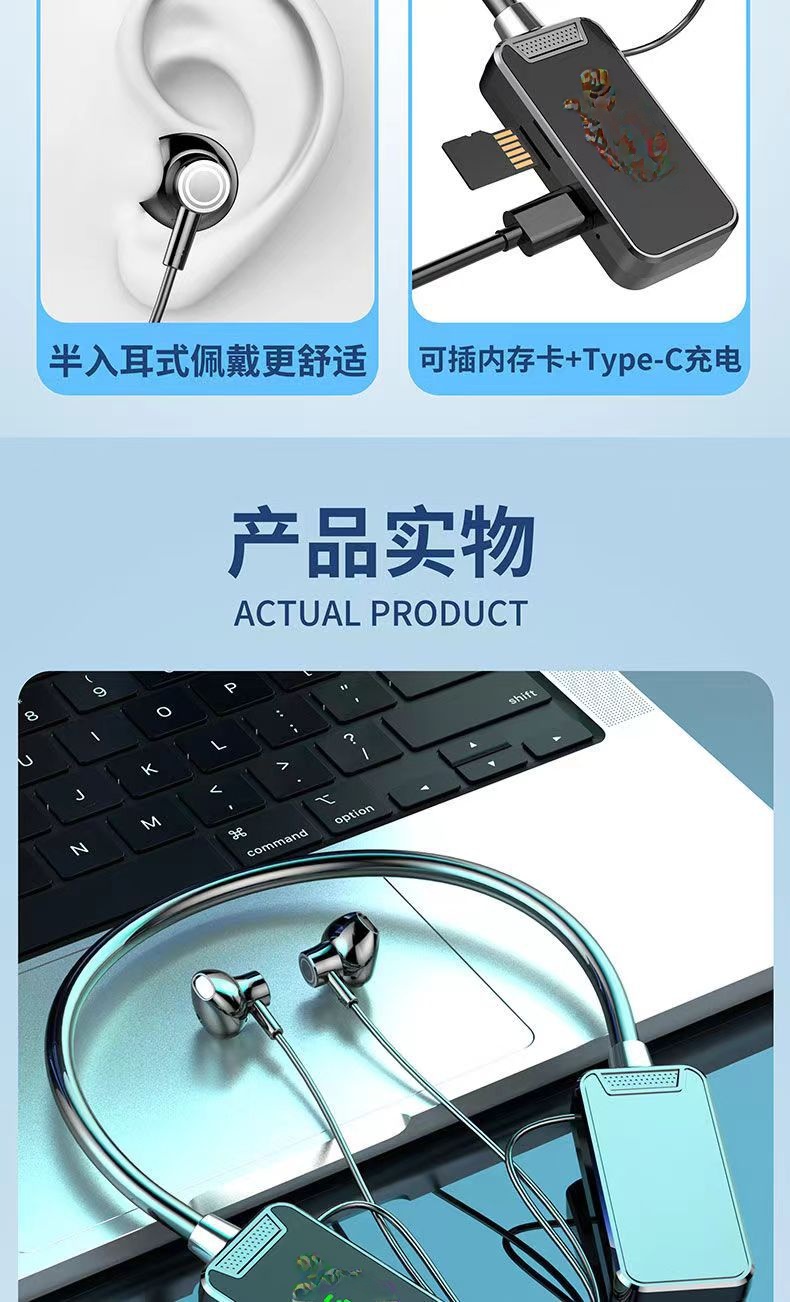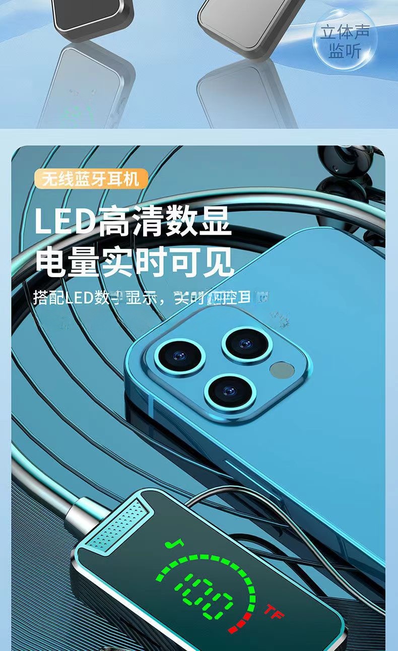 新款挂脖蓝牙耳机运动K歌超长待机超大数显插卡