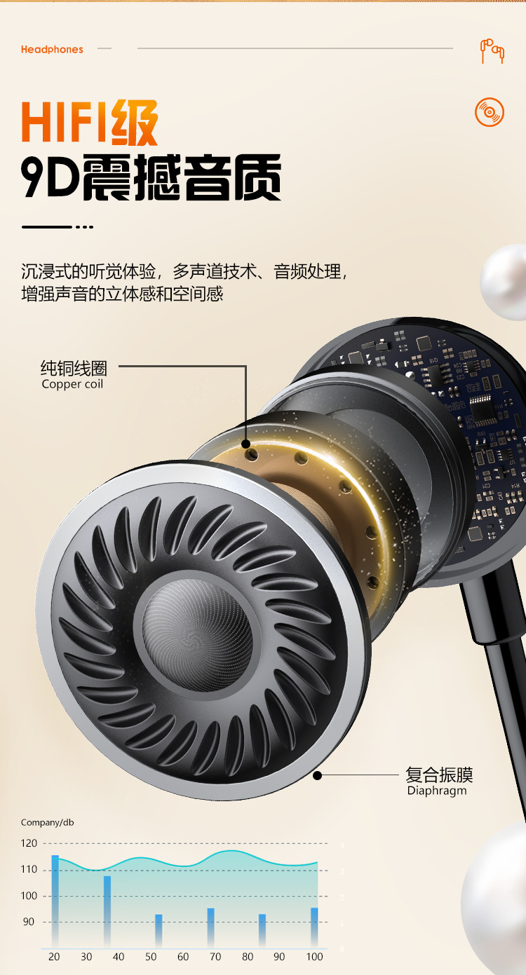 金属磁吸有线Type-C耳机入耳式重低音手机线控调音电竞游戏耳机