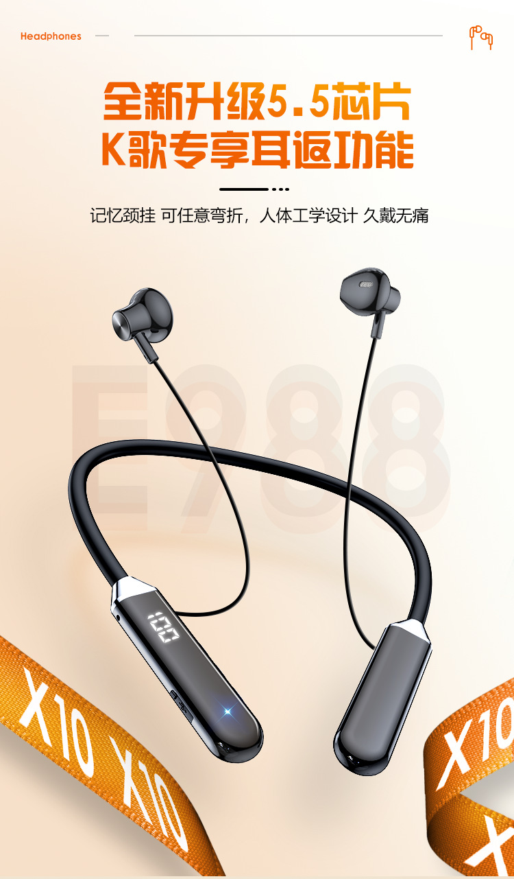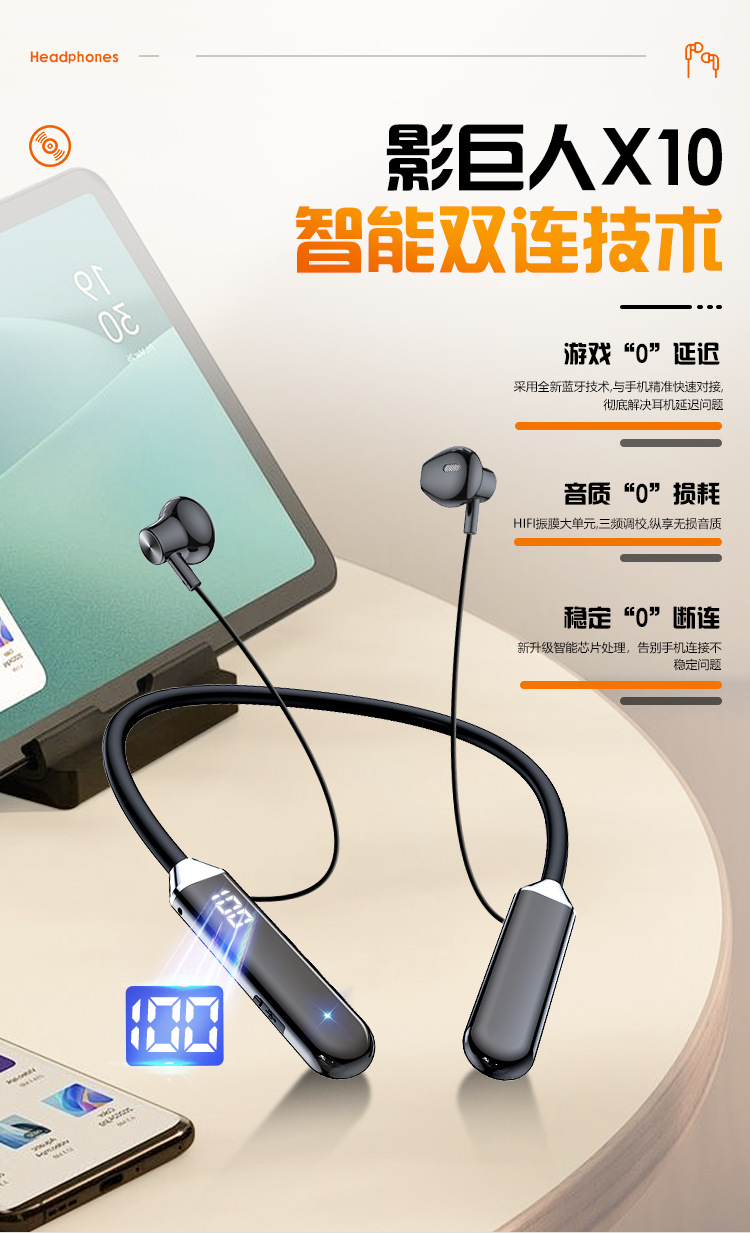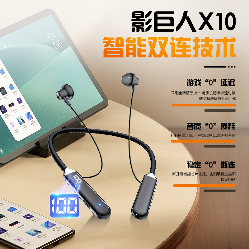 X10颈挂脖挂颈式蓝牙耳机无线磁吸新款私模大电量超长续航5.5