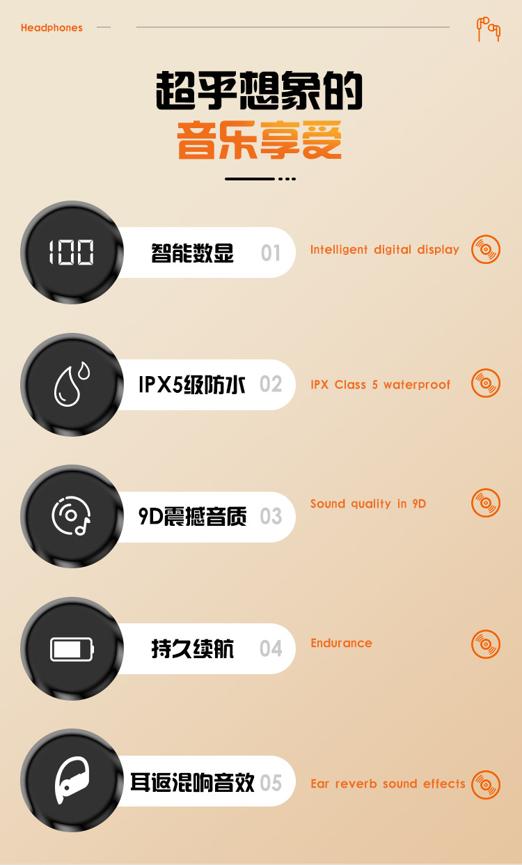 V80耳夹式蓝牙耳机不入耳佩戴运动跑步防水防汗超长待机降噪迷你