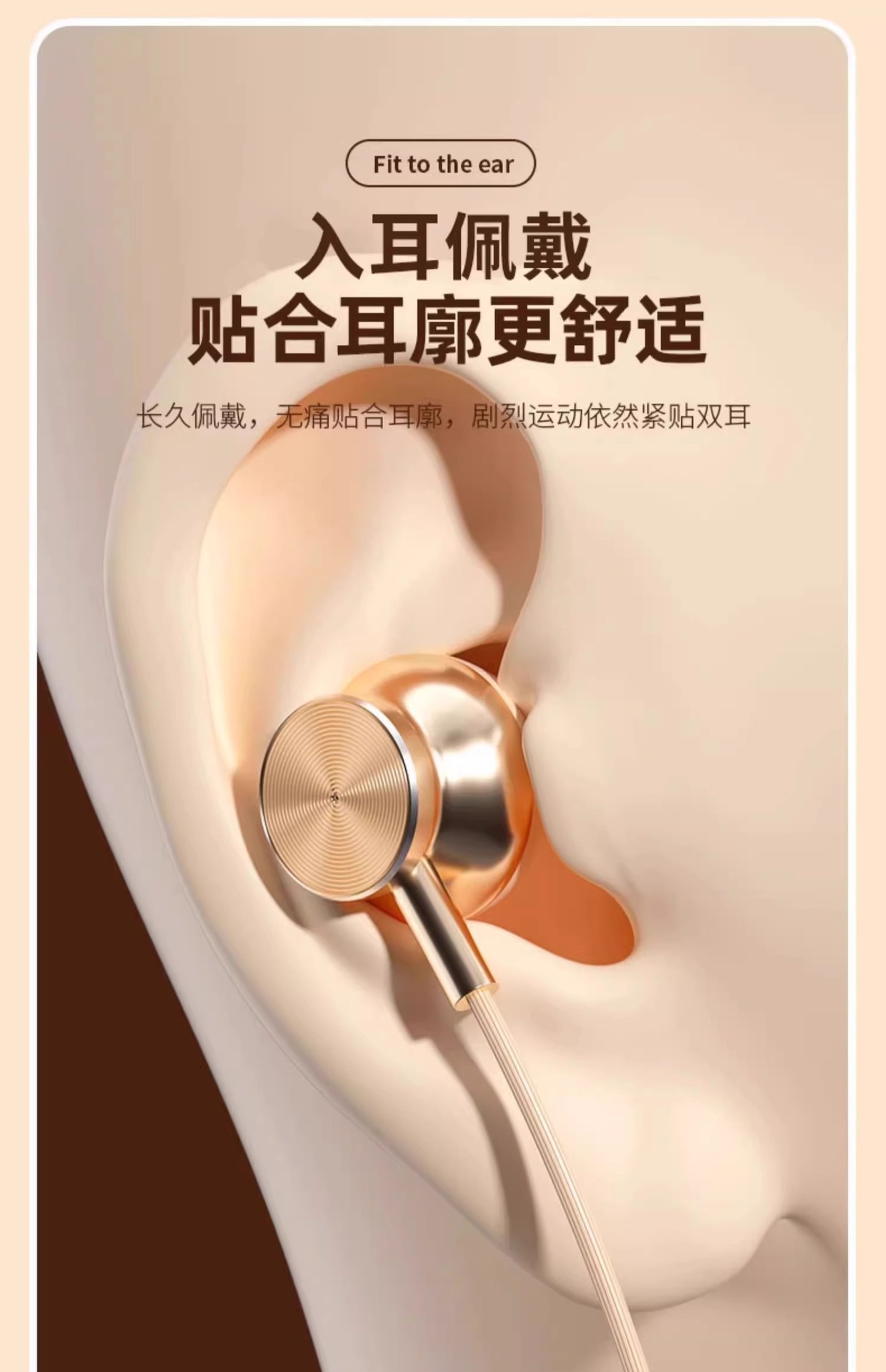 入耳式有线耳机typec接口适用苹果16/15华为oppo小米荣耀耳机