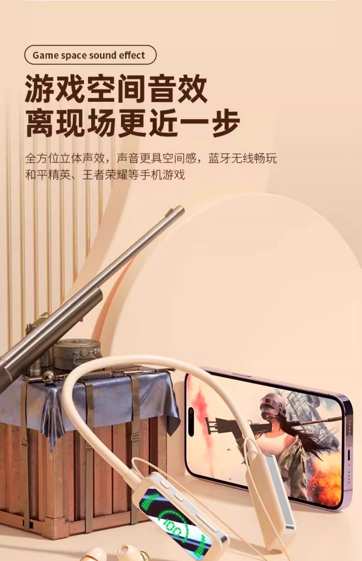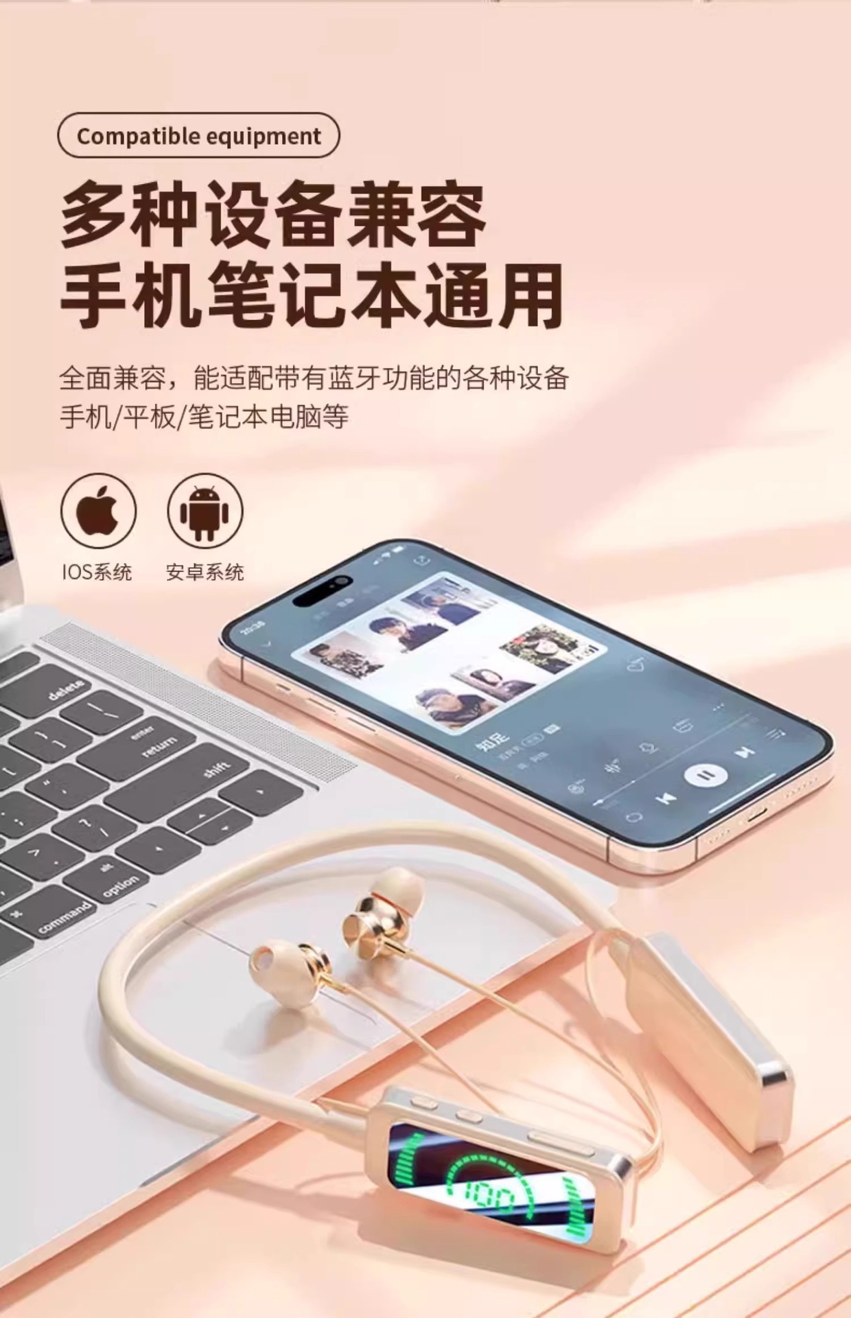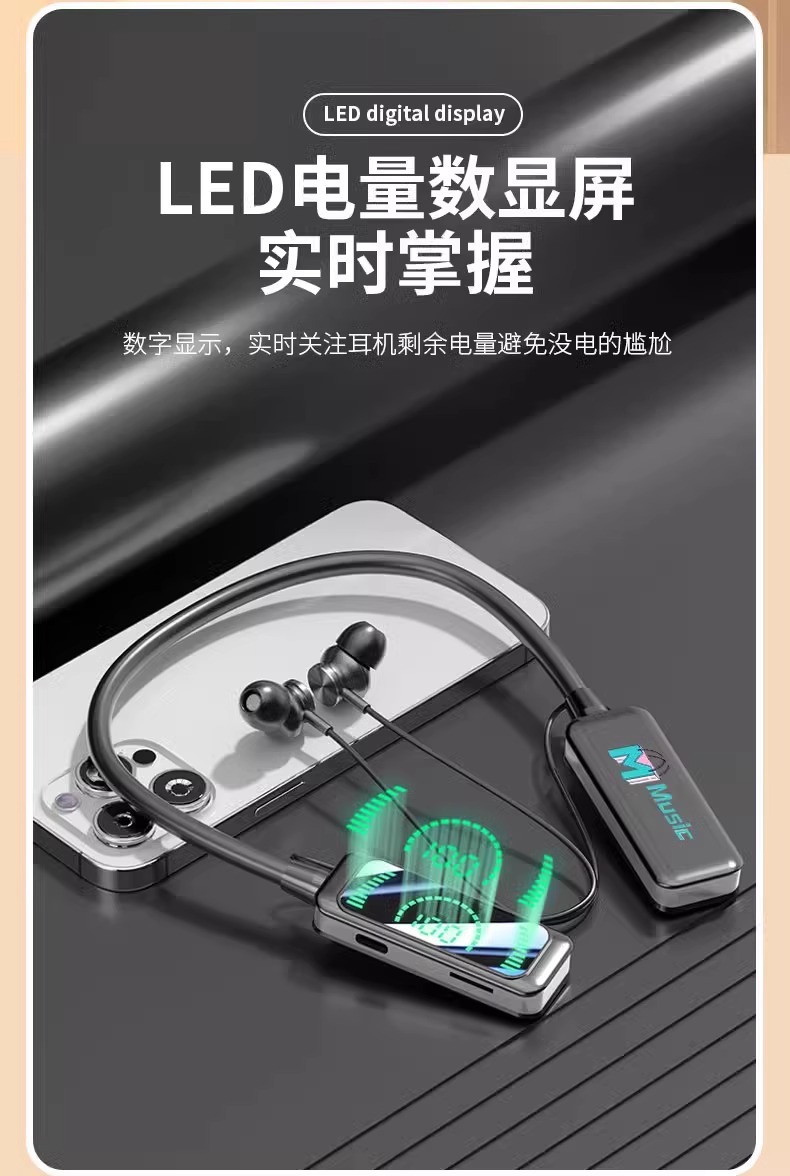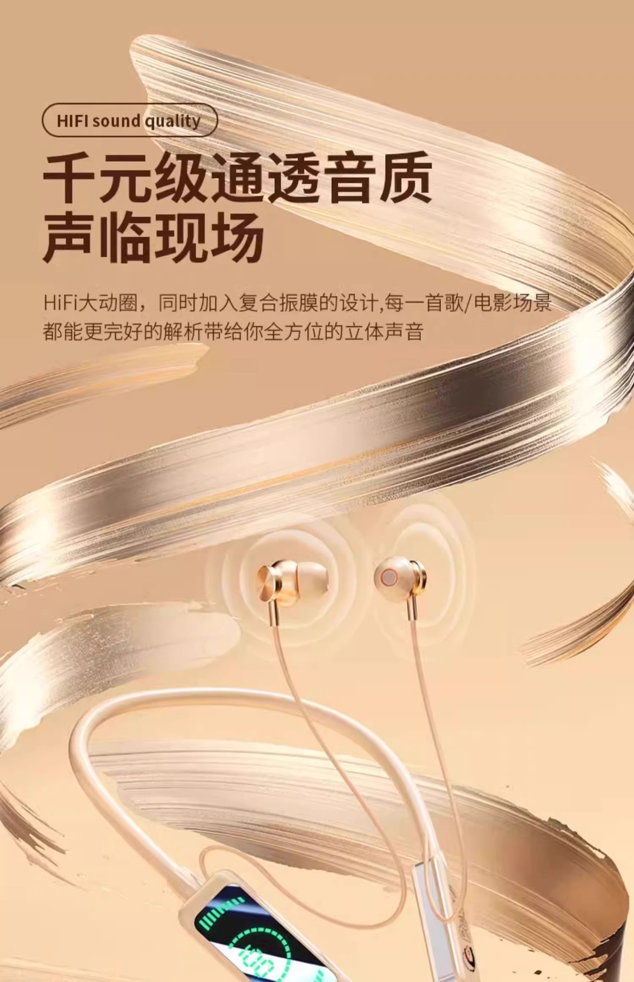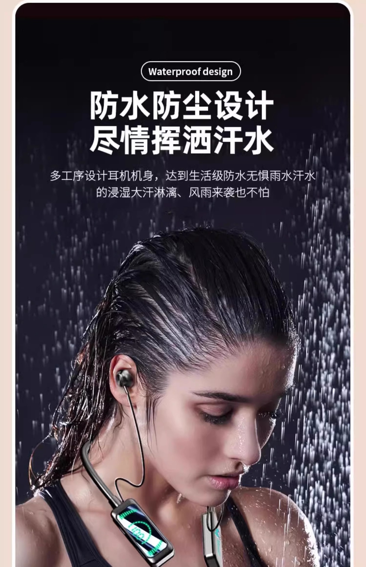 挂脖式蓝牙耳机无线颈挂入耳式降噪数显超长续航运动跑步男女