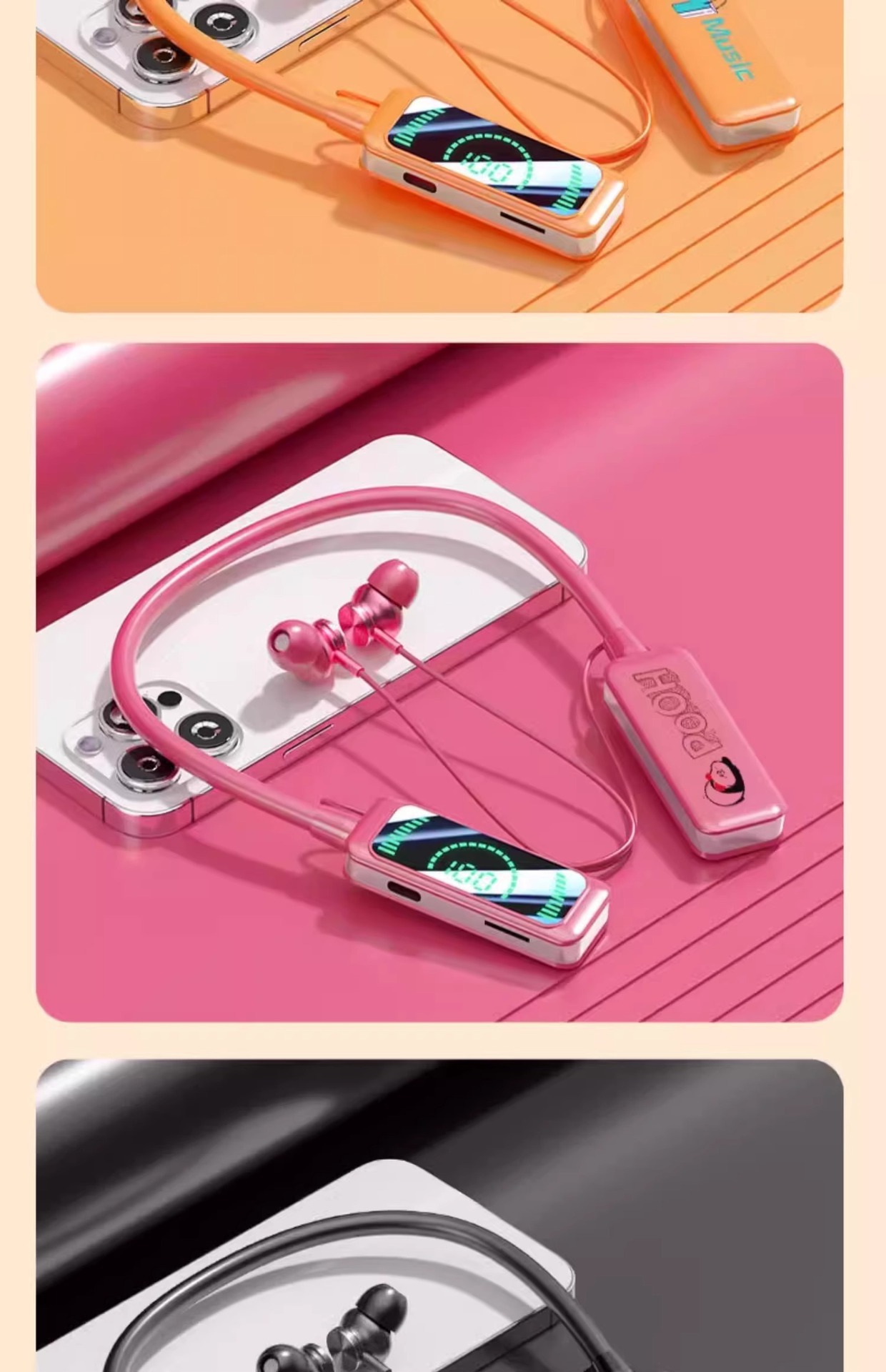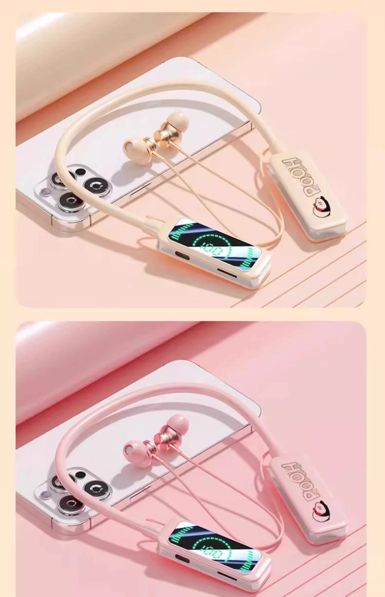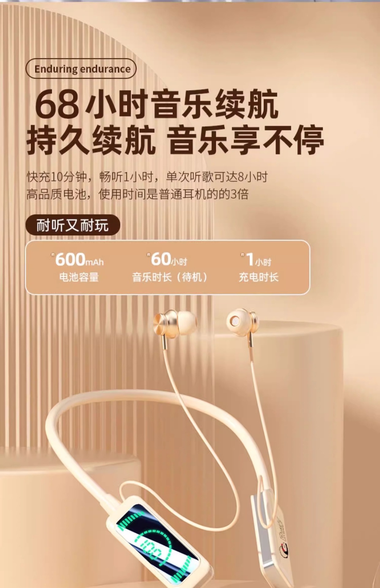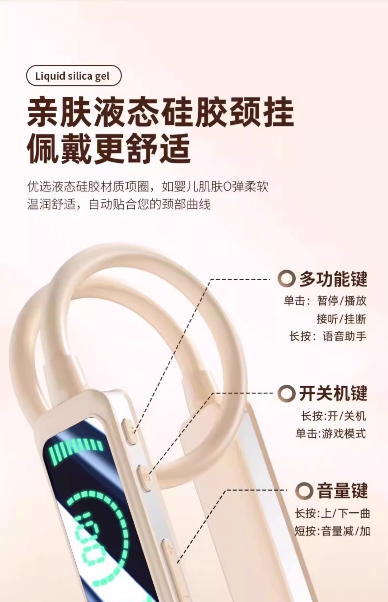 挂脖式蓝牙耳机无线颈挂入耳式降噪数显超长续航运动跑步男女