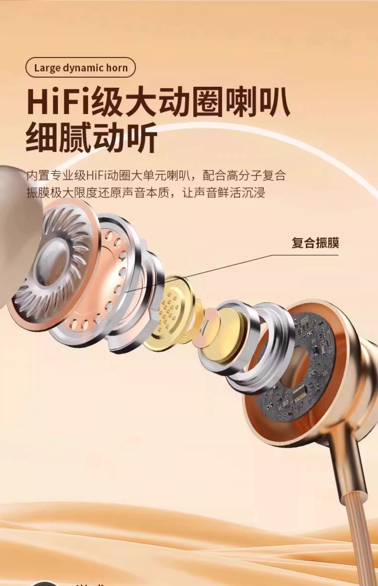 3.5mm适用苹果华为手机直插有线耳机typec数字入耳式hifi游戏耳机