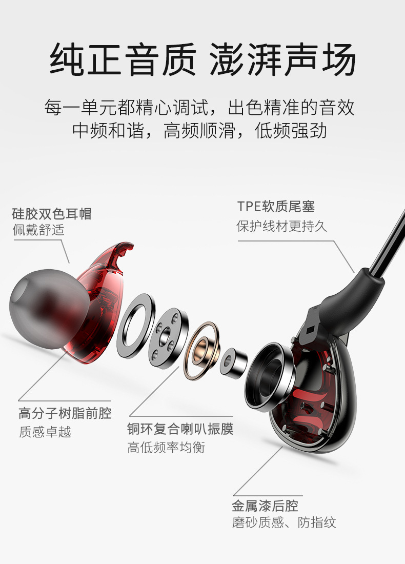 有线耳机半入耳式3.5mm圆孔接口type-c扁口带麦k歌数字音频全兼容