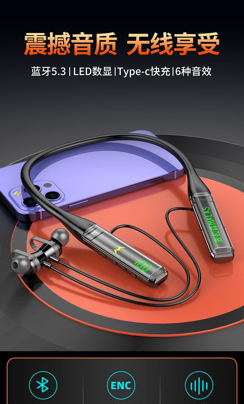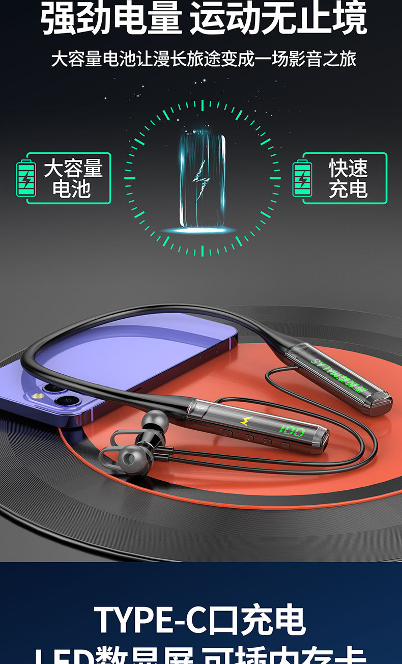 超长续航运动真无线蓝牙耳机新款挂脖式