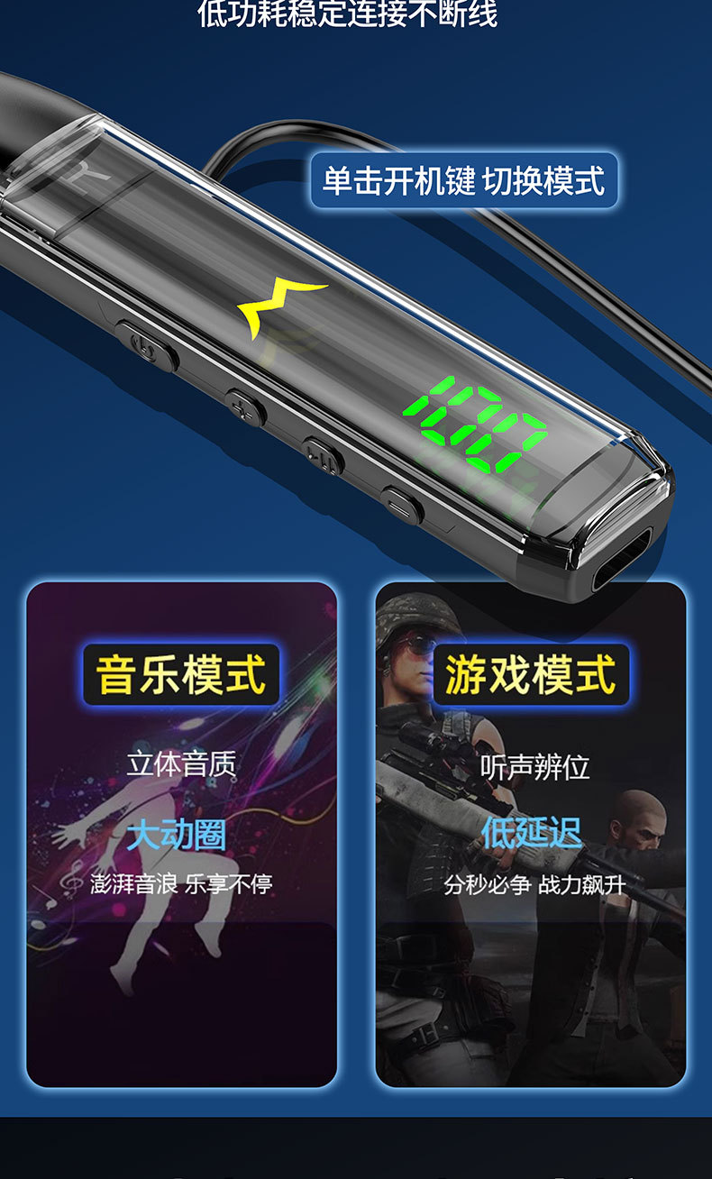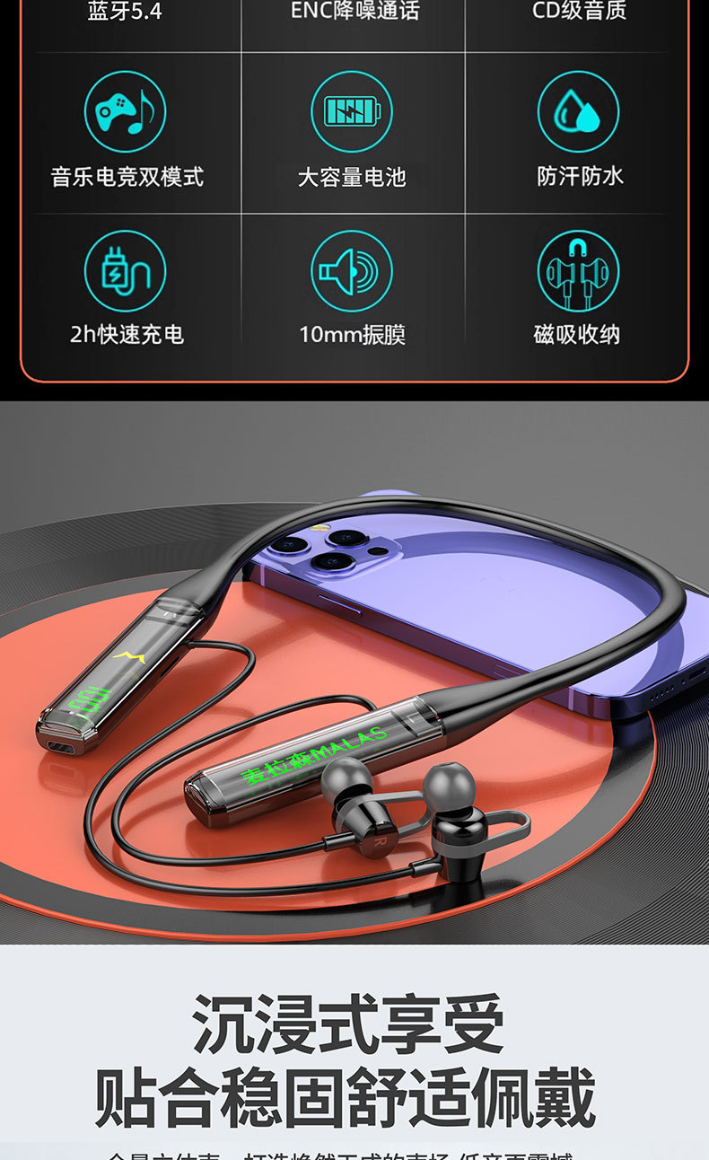 无线蓝牙耳机挂脖式运动跑步耳塞式游戏电竞超长续航降噪电竞风
