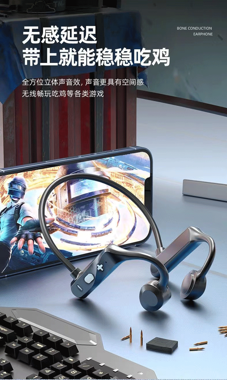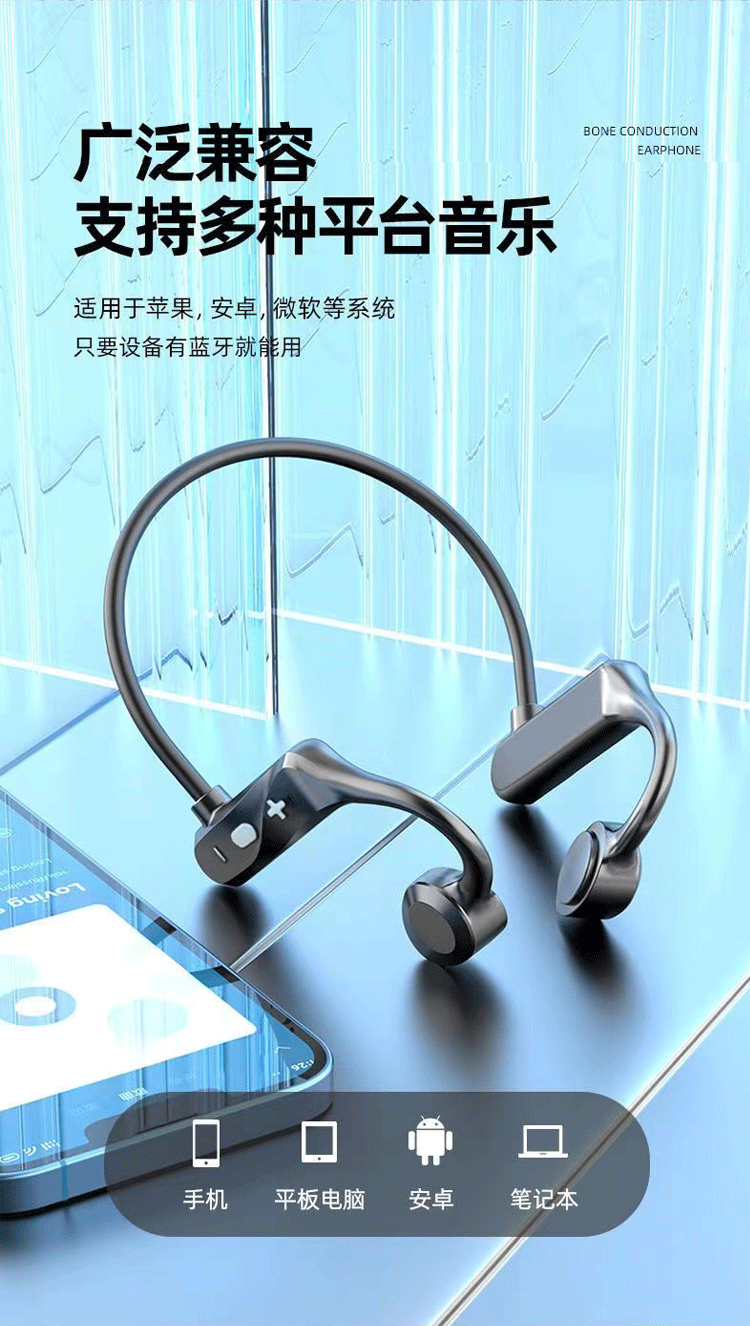 K69骨传导无线蓝牙耳机不入耳挂耳式防水挂脖式超长待机运动跑步