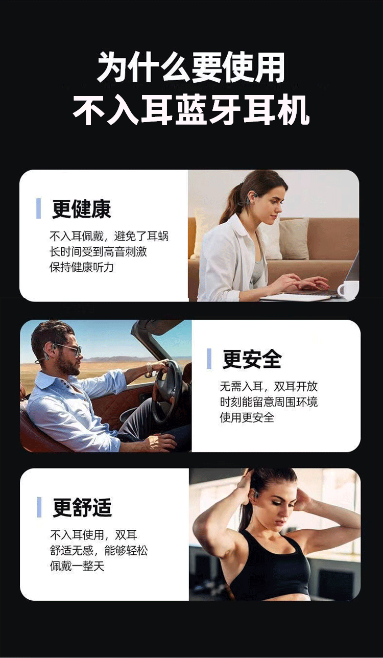 无线蓝牙耳机开放式运动耳夹式超长续航高颜值高音质