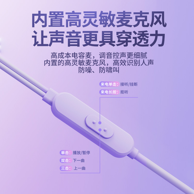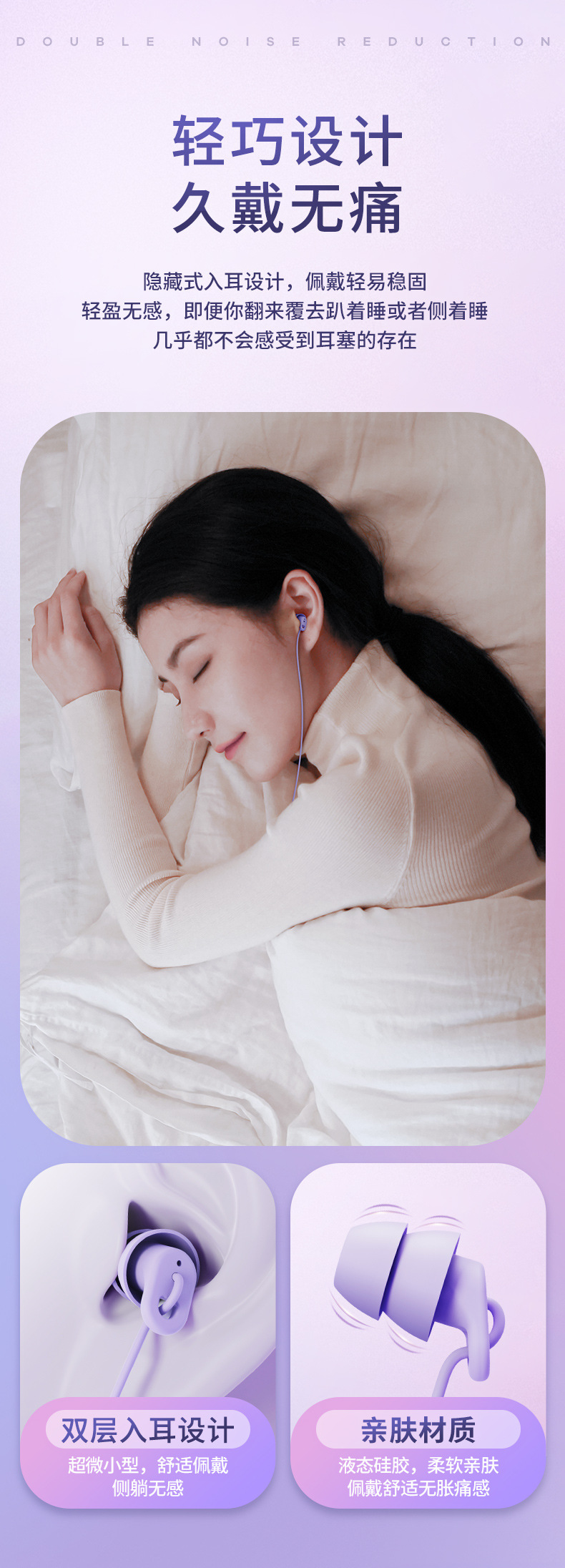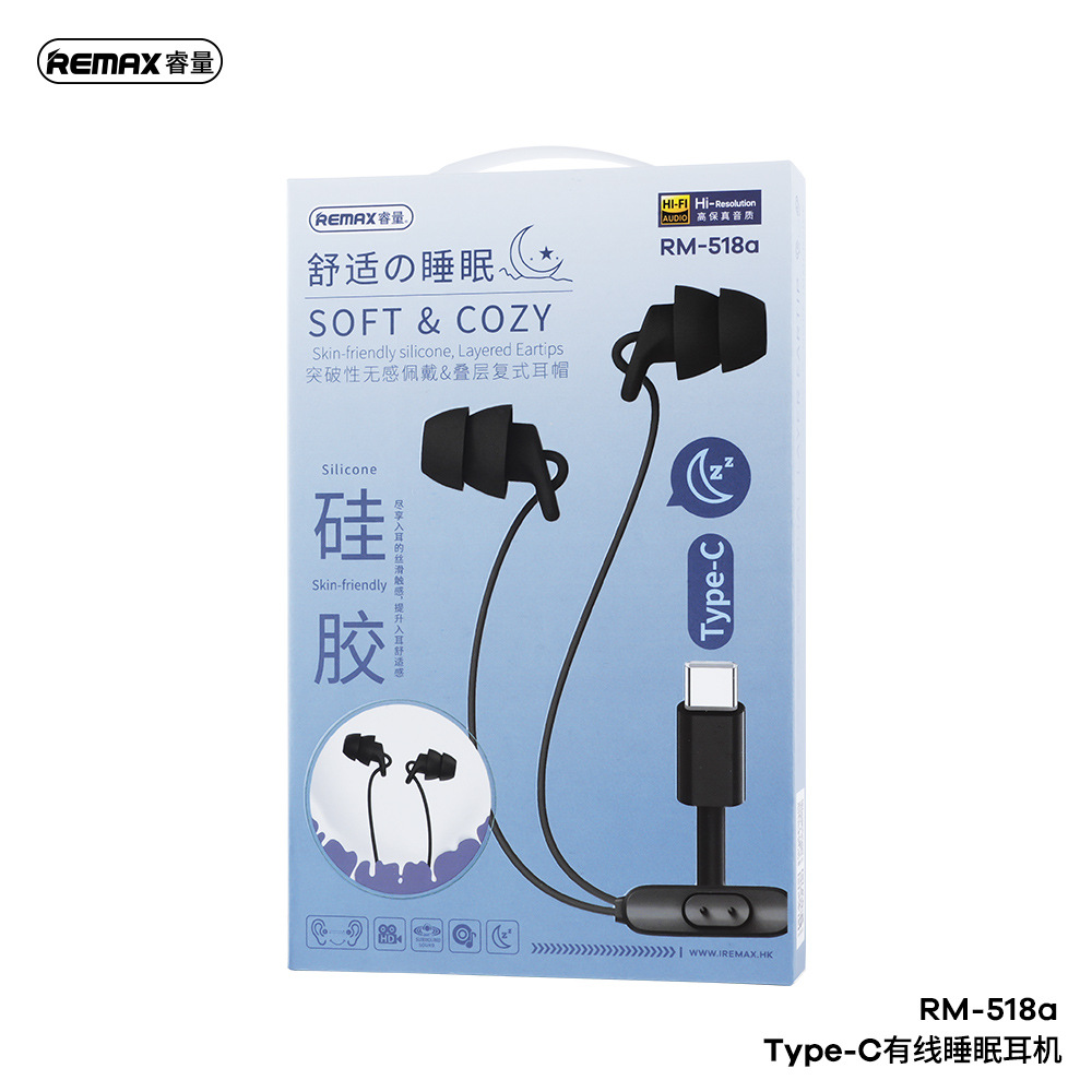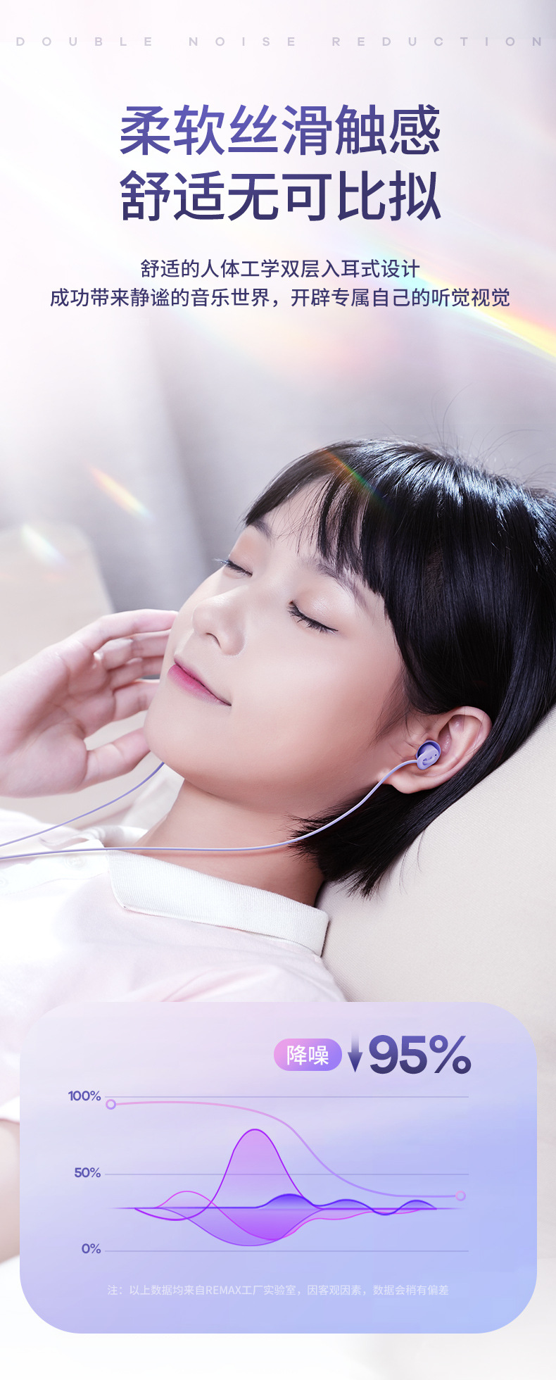 REMAX有线睡眠耳机带麦入耳式降噪耳机线控适用苹果安卓华为手机