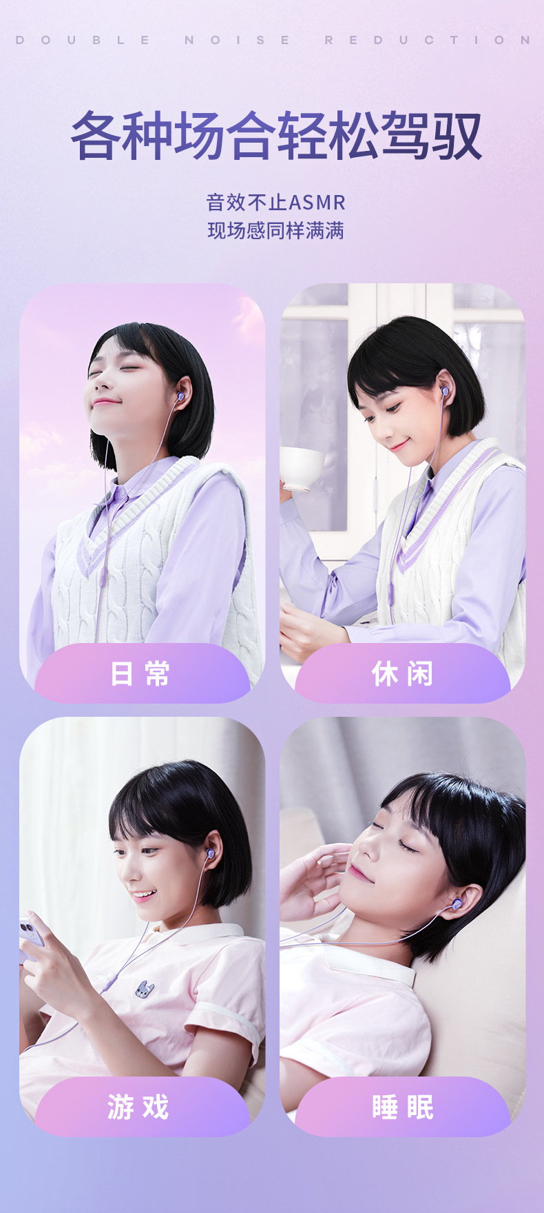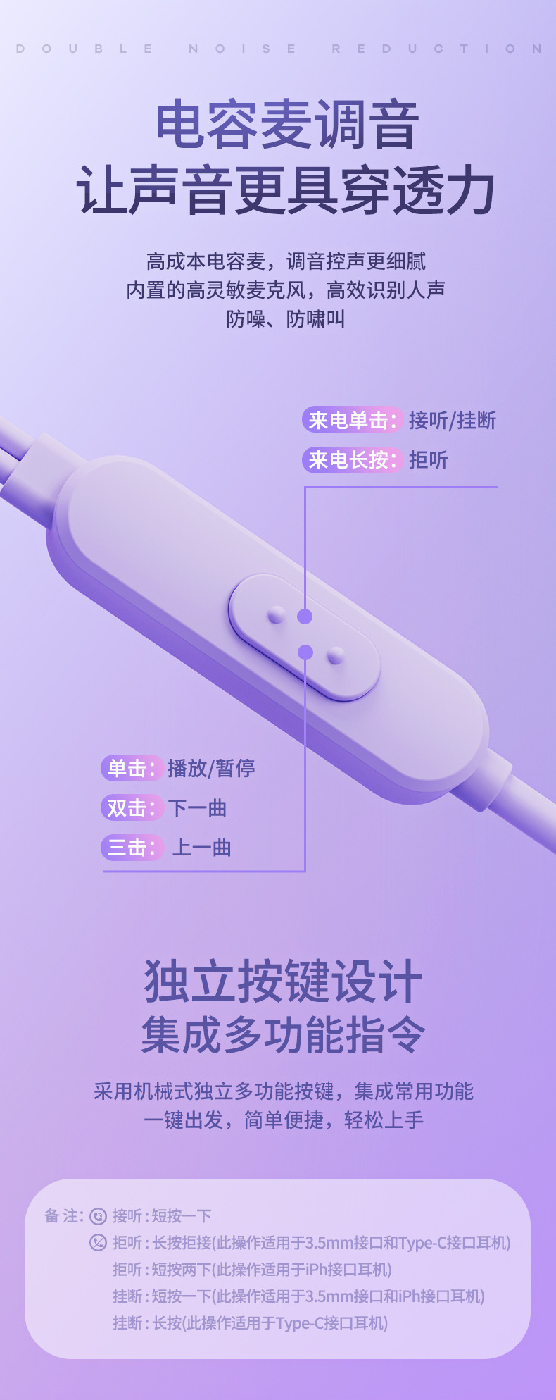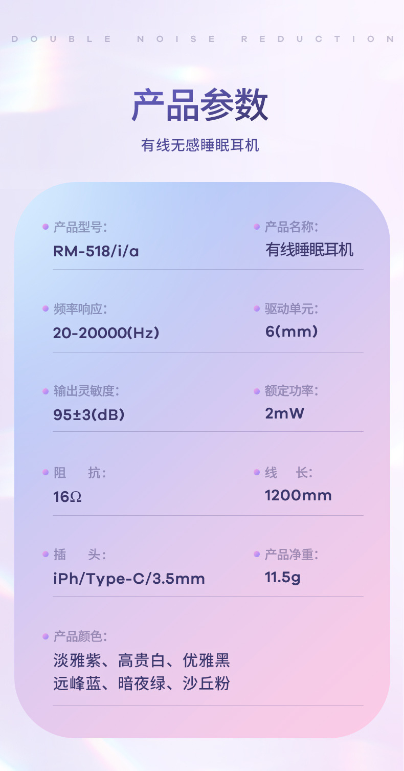 REMAX有线睡眠耳机带麦入耳式降噪耳机线控适用苹果安卓华为手机