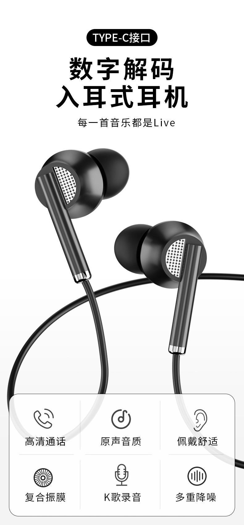 E51数字解码TYPE-C耳机【黑色裸装】