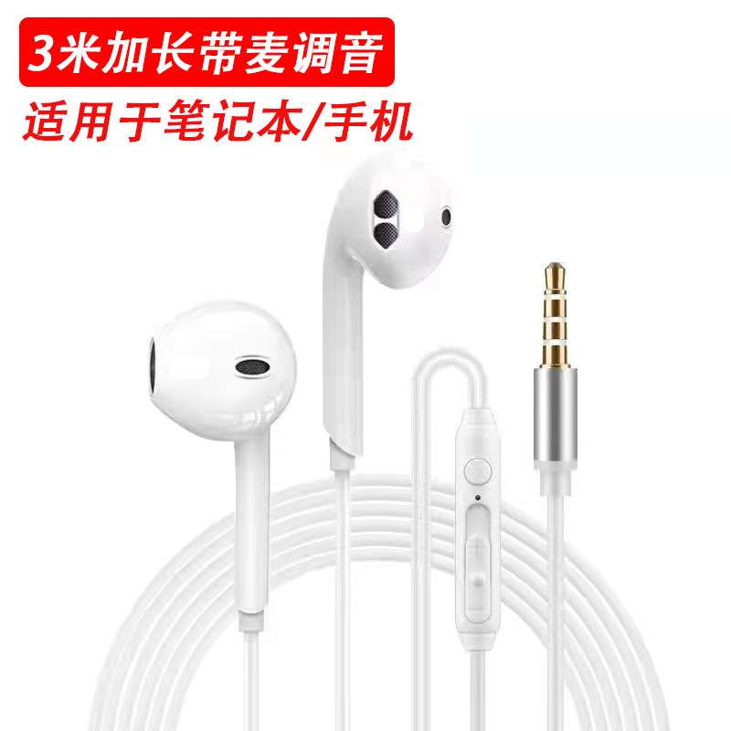 电脑耳机入耳式有线圆孔笔记本二合一2米3米加长线声卡直播带麦