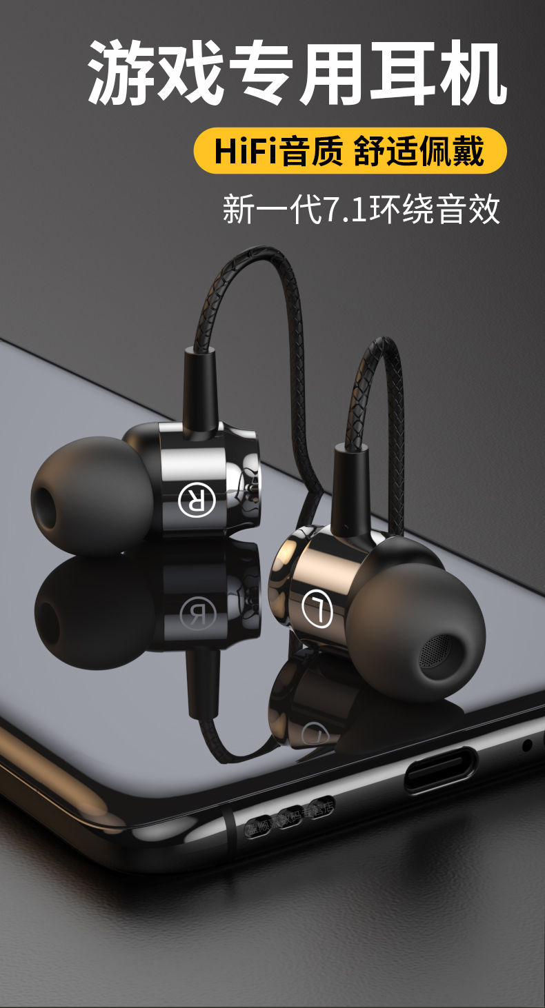 原装游戏耳机有线入耳式高音质降噪type-c圆口适用于华为iqoo小米