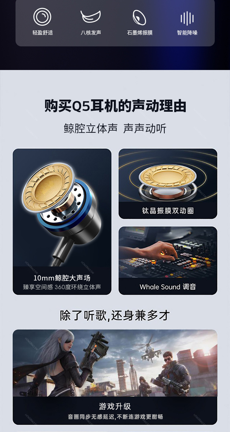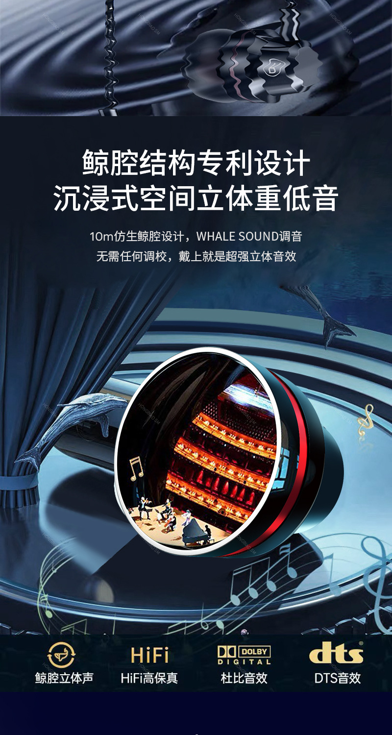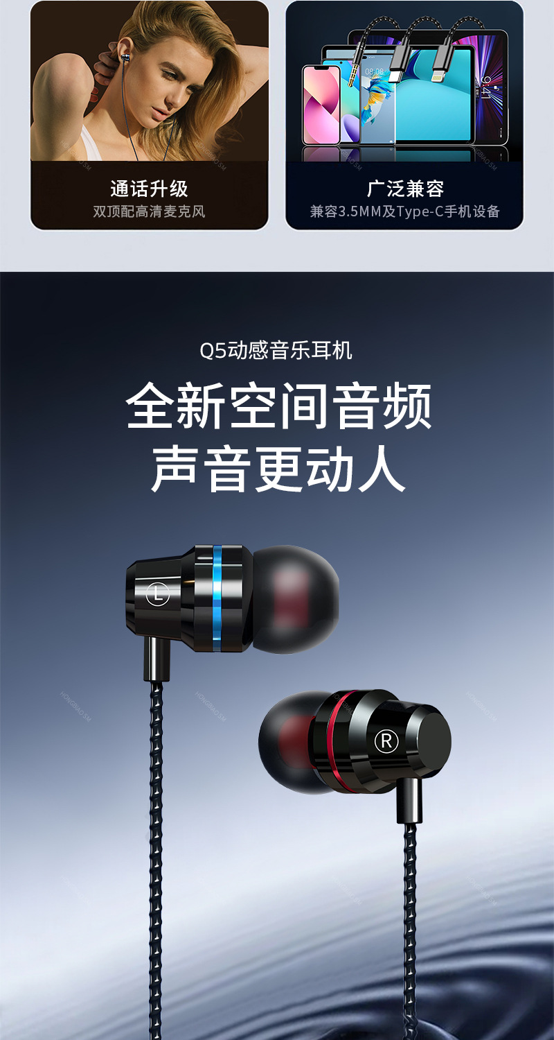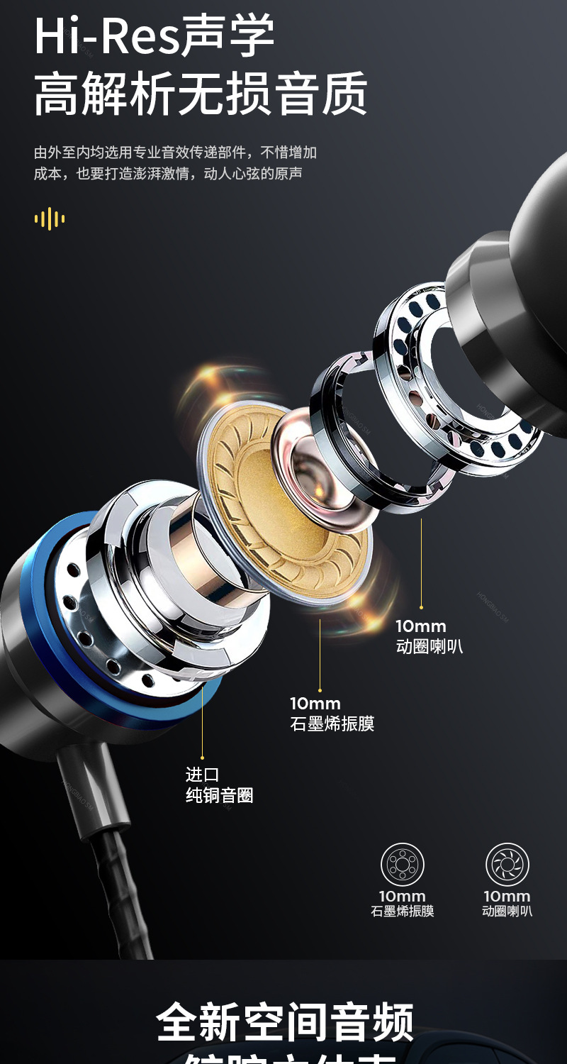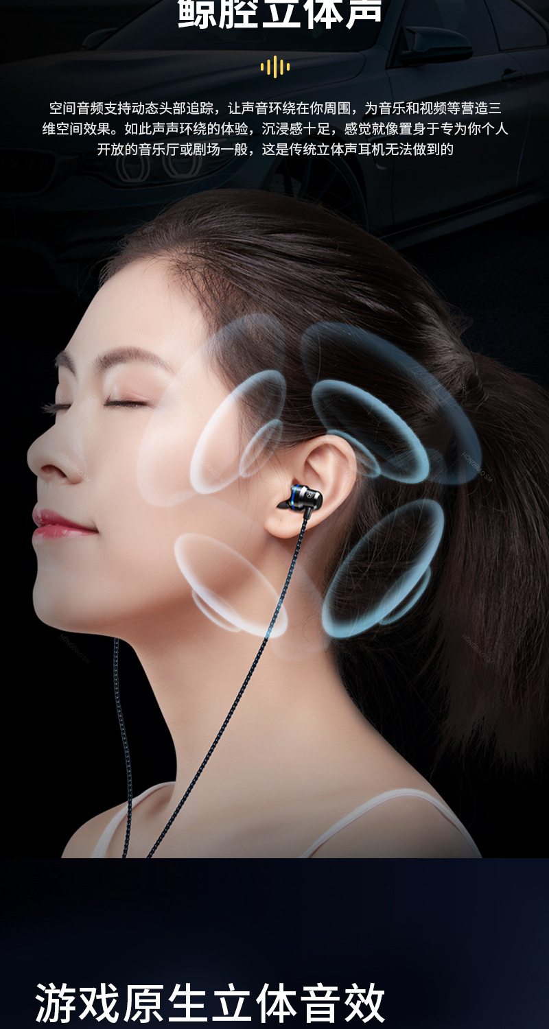 双核双动圈入耳式线控耳机适用于3.5mm圆孔有线耳机