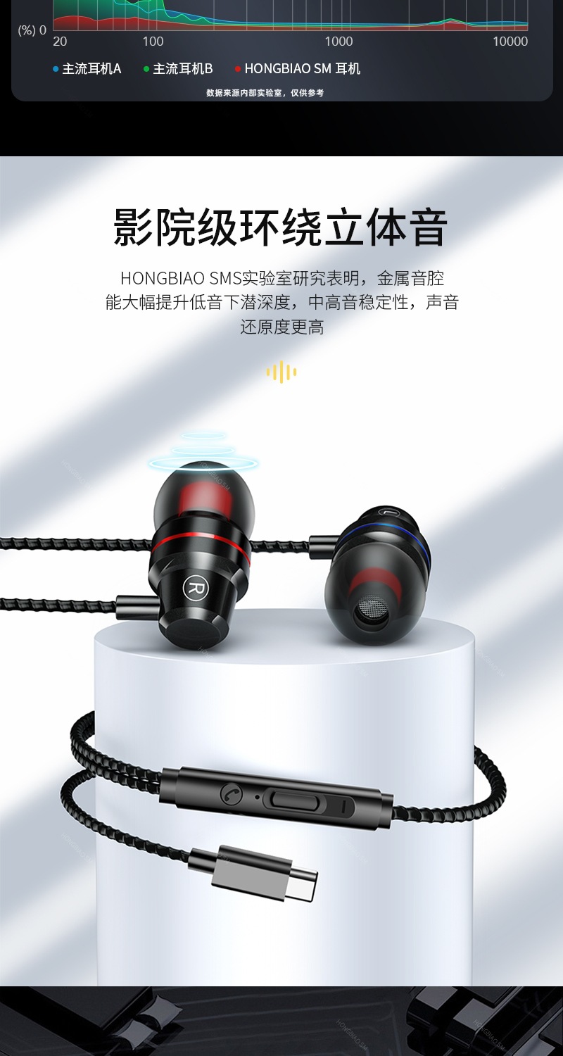 适用有线耳机TypeC入耳式线控耳机USB-C1