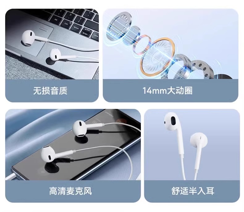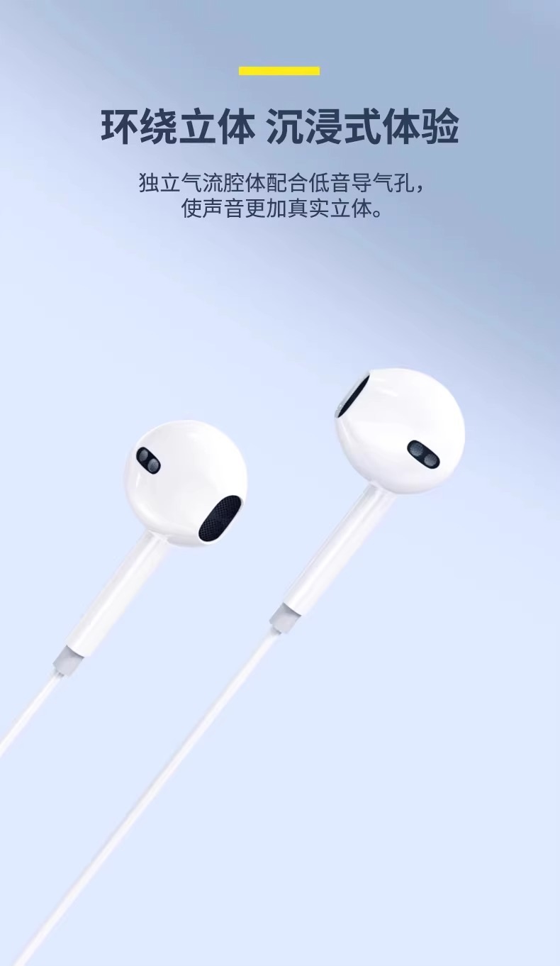 胶头入耳式重低音手机耳机适用华为小米OPPO苹果vivo手机音乐耳机