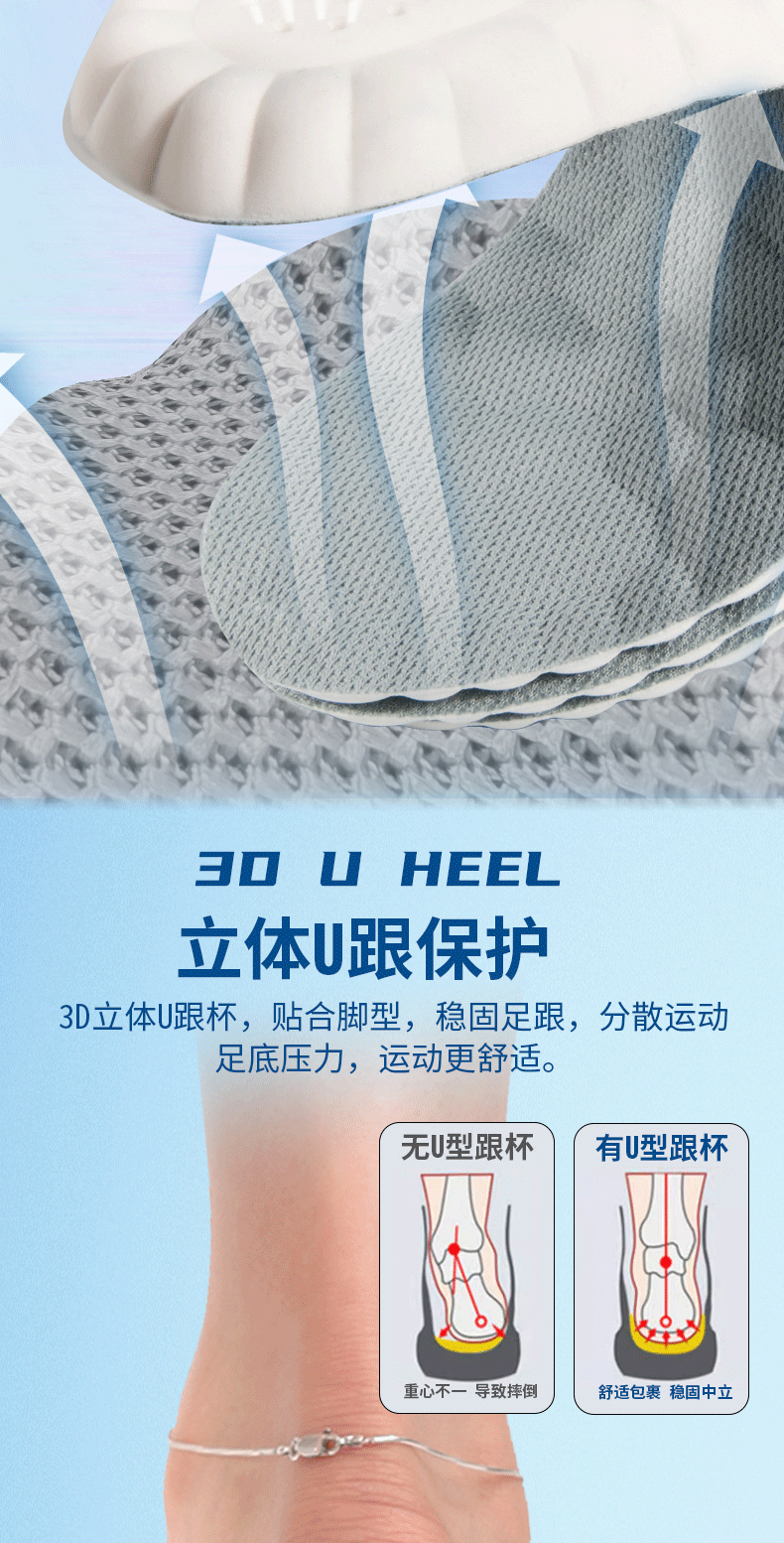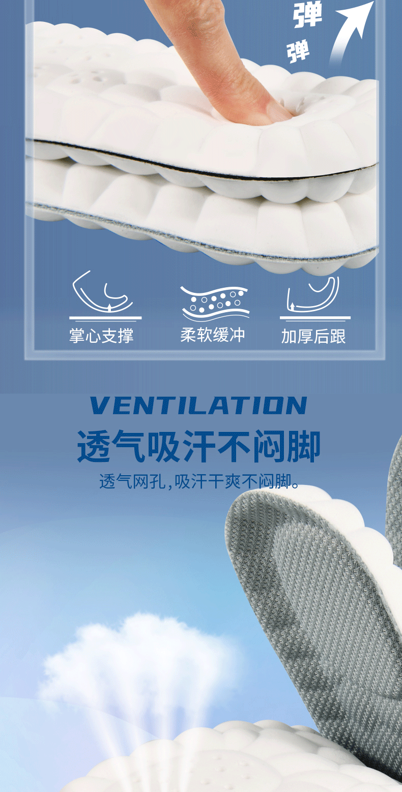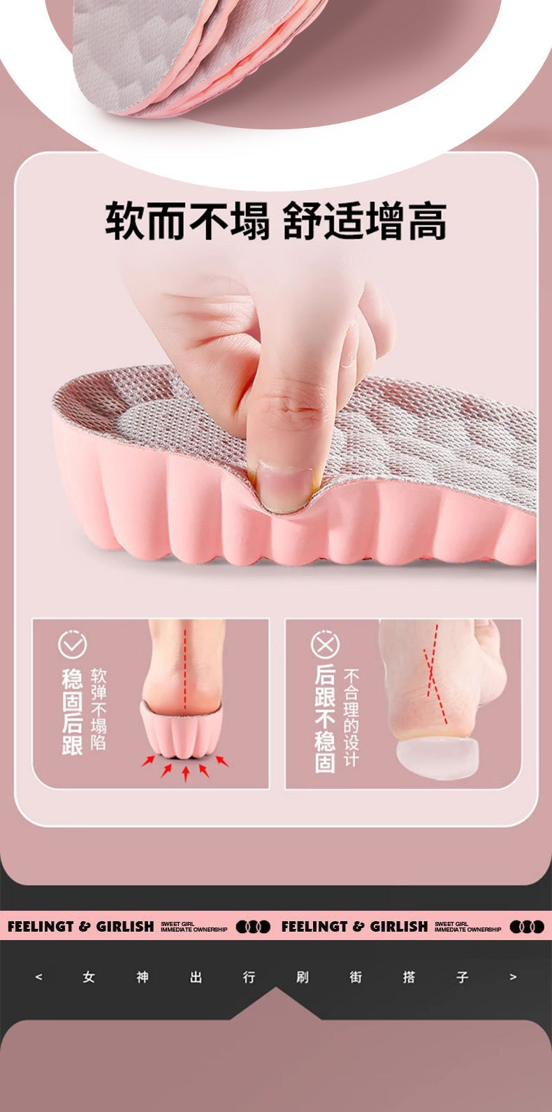 军训鞋垫踩屎感运动鞋垫防臭吸汗鞋垫软底不累脚鞋垫内增高鞋垫