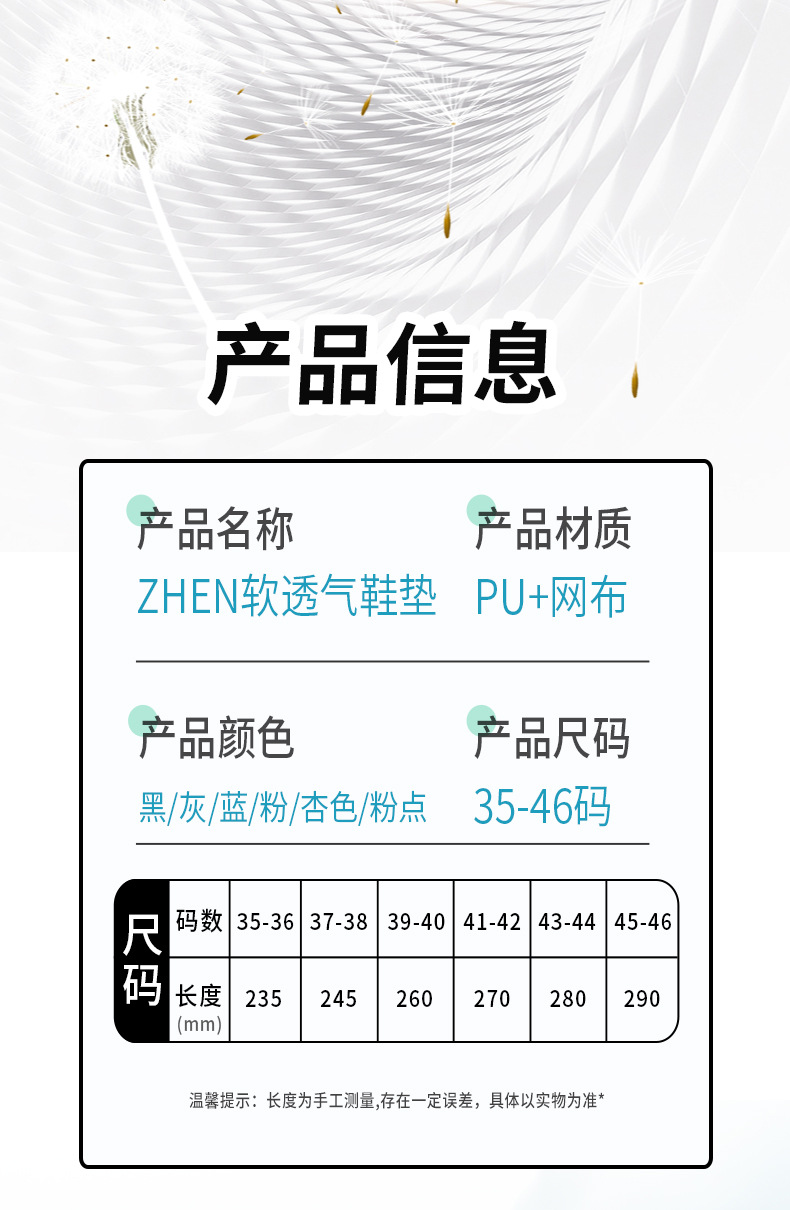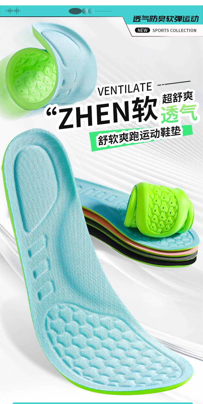 鞋垫踩屎感超软减震运动鞋垫PU透气吸汗军训鞋垫防臭除臭运动鞋垫